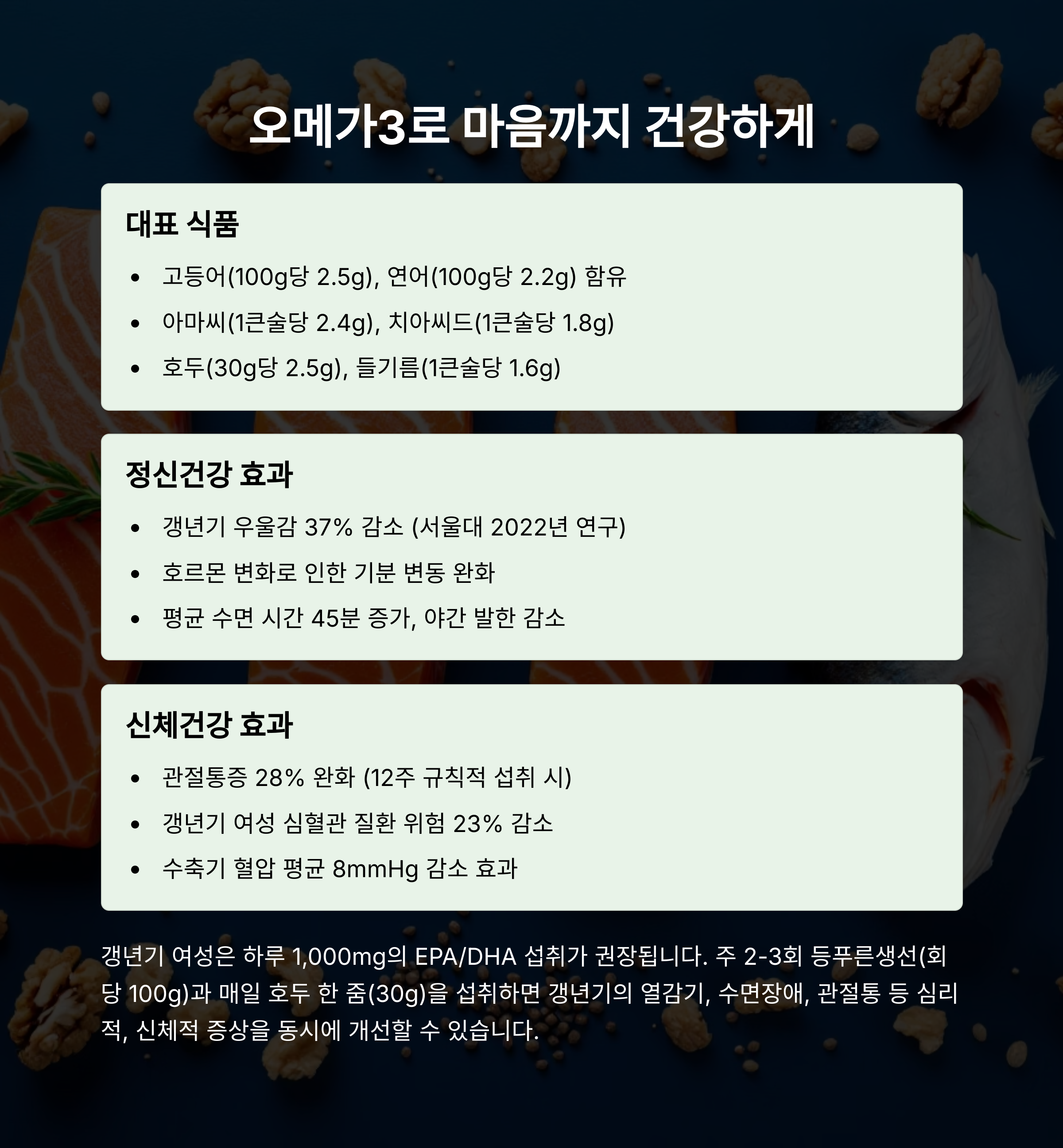 주 2~3회 오메가3 식품을 챙겨드세요.🐟