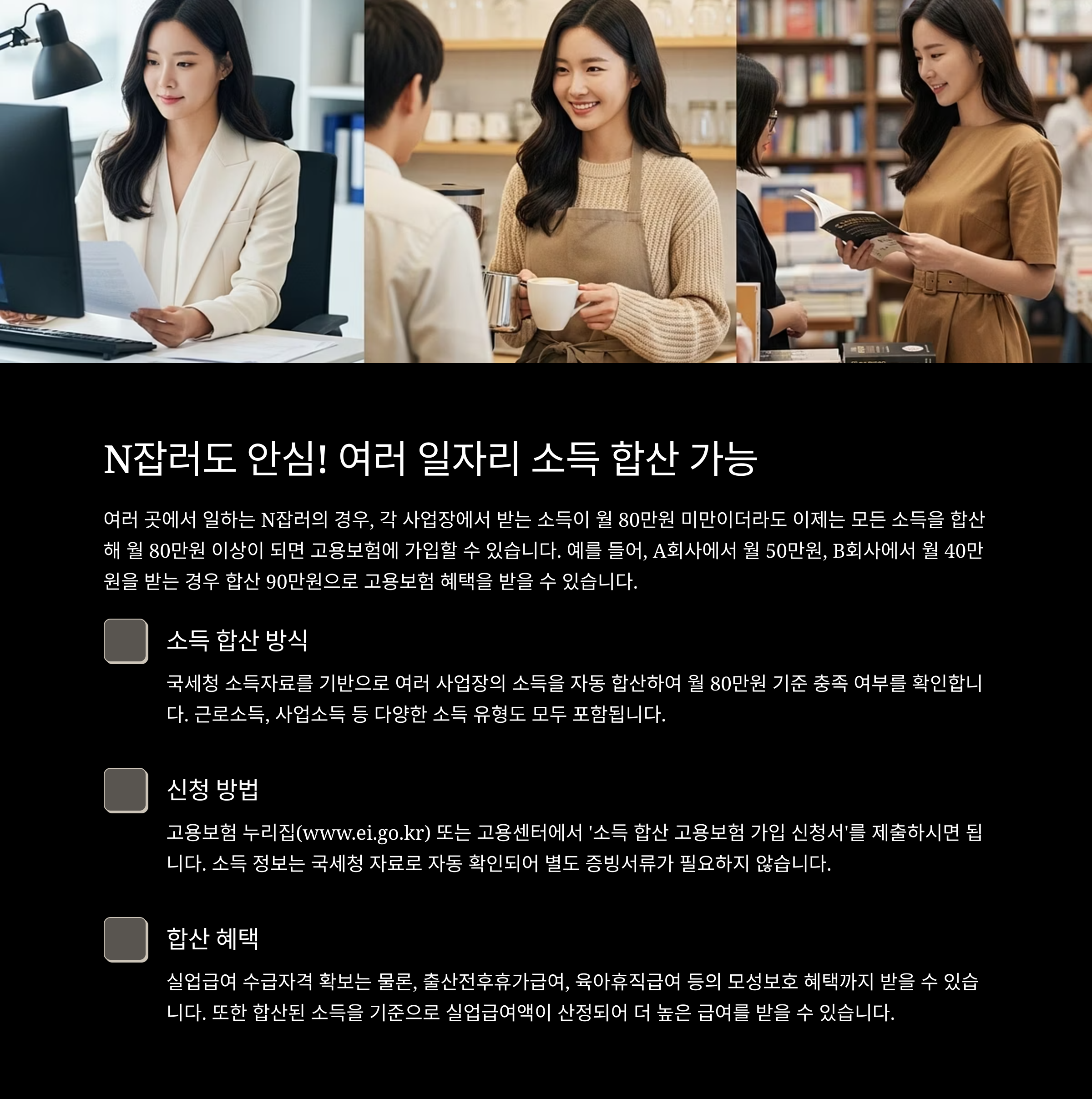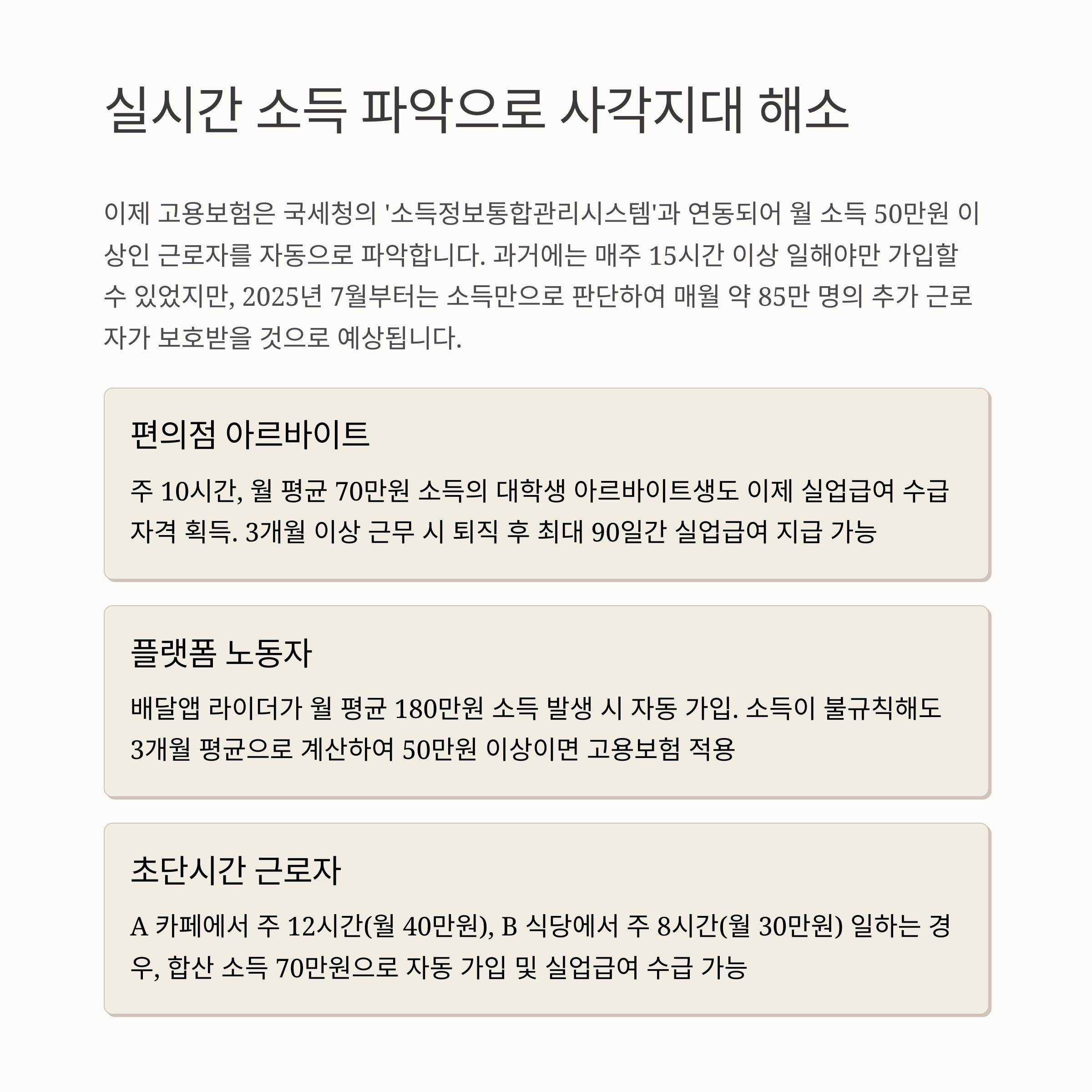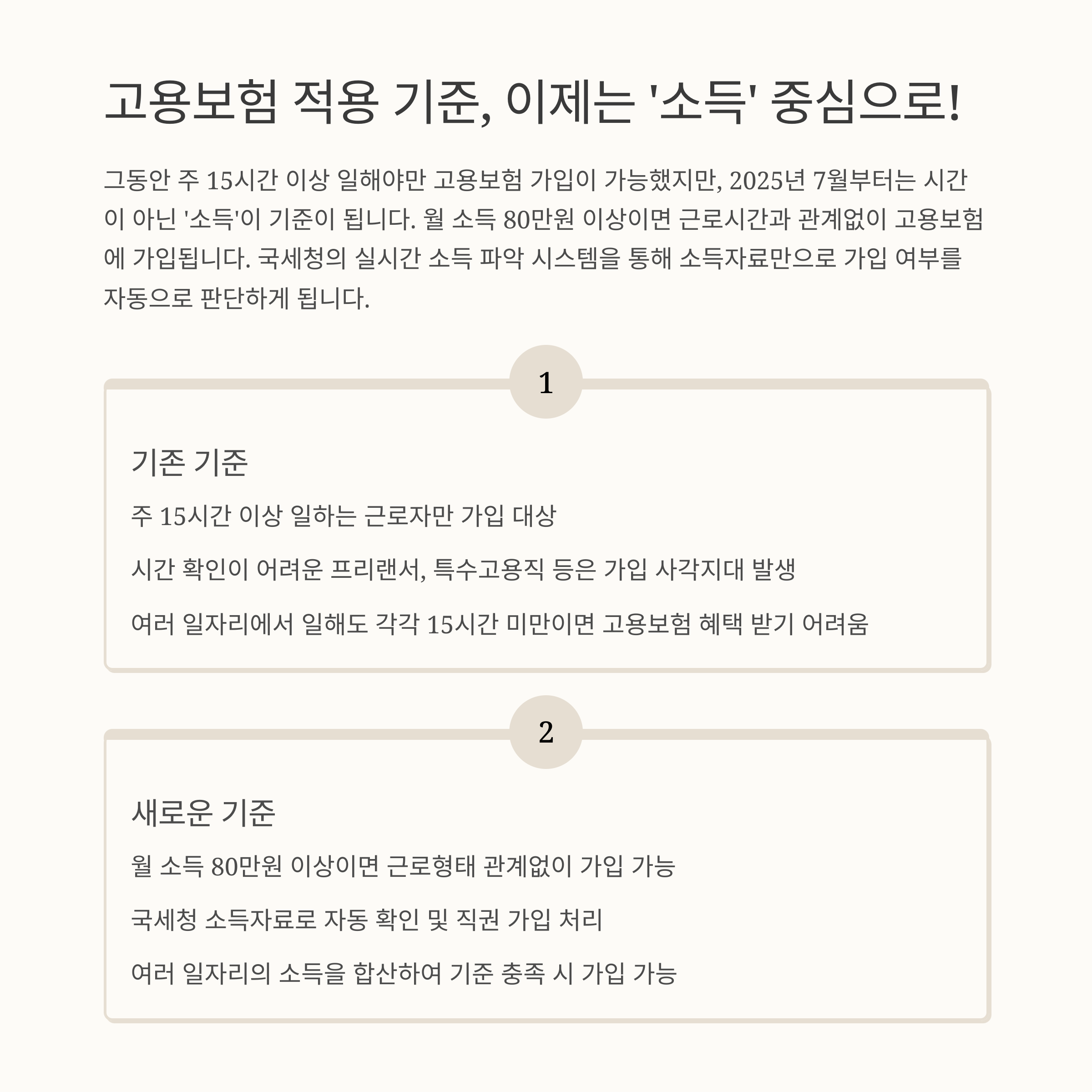 이제는 ‘근로시간’이 아니라 ‘소득’을 기준으로 고용보험 적용 여부가 결정돼요.