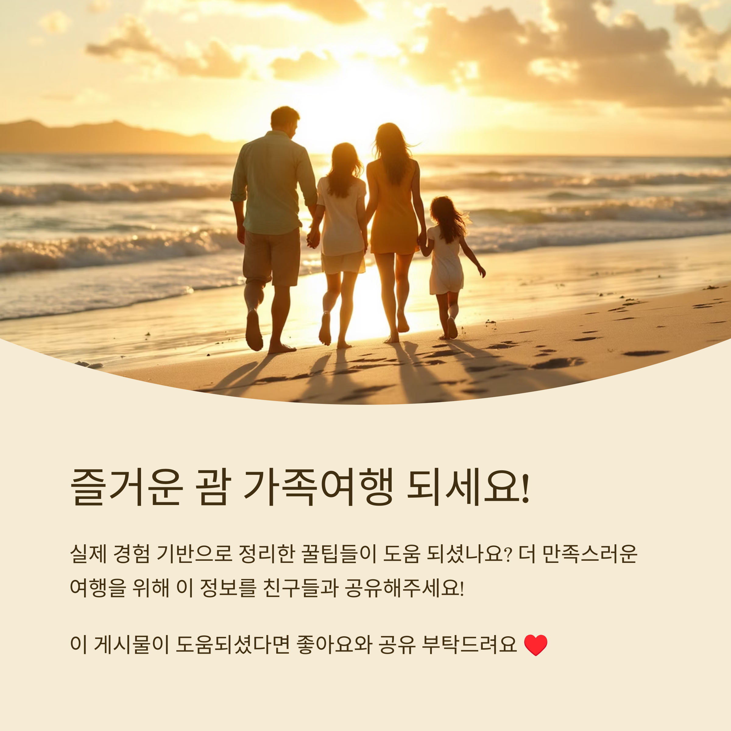 여름 괌 가족여행을 준비 중이라면, 오늘 소개한 꿀팁들이 많은 도움이 되셨길 바라요.