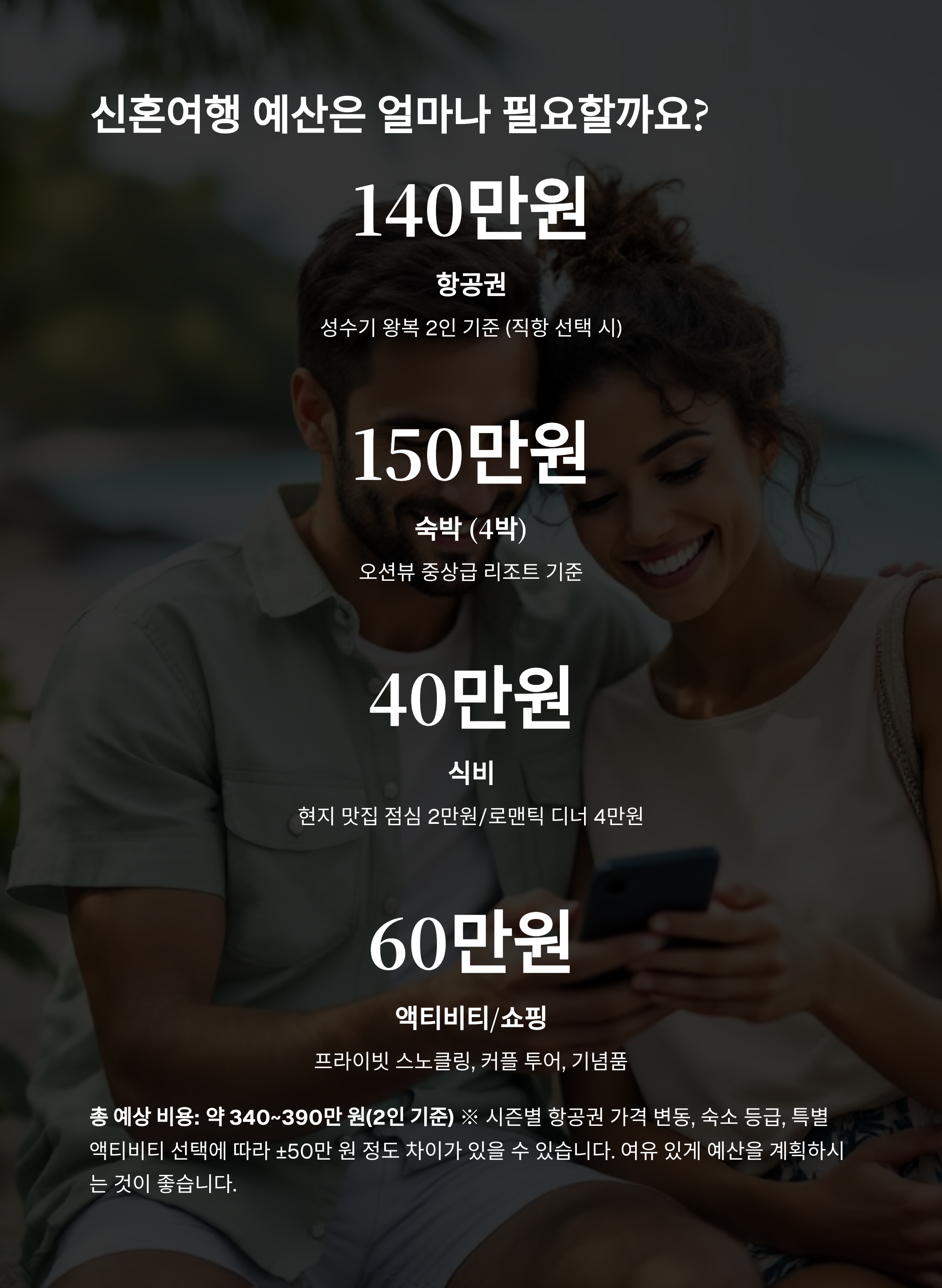 총 예상 비용: 약 340~390만 원(2인 기준)