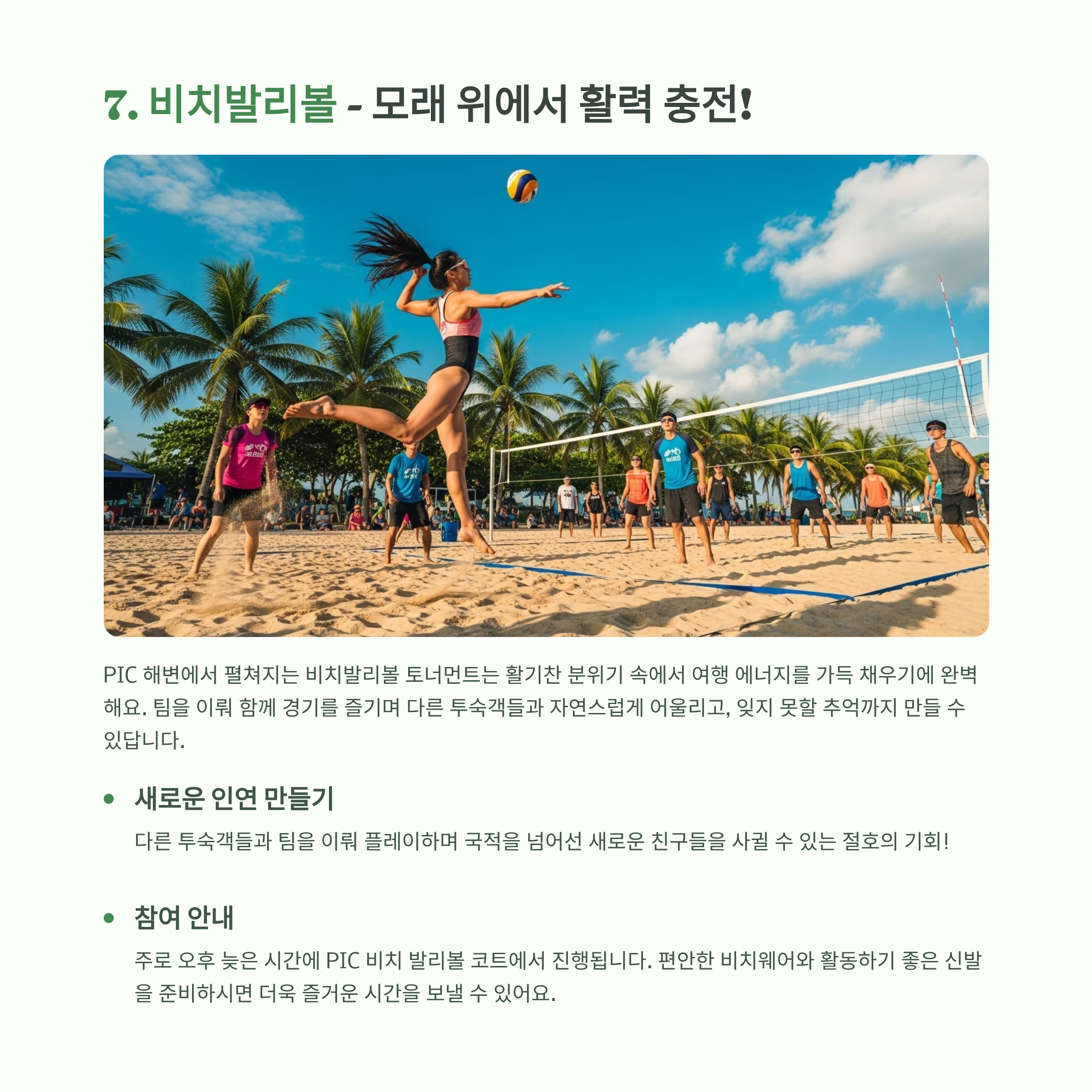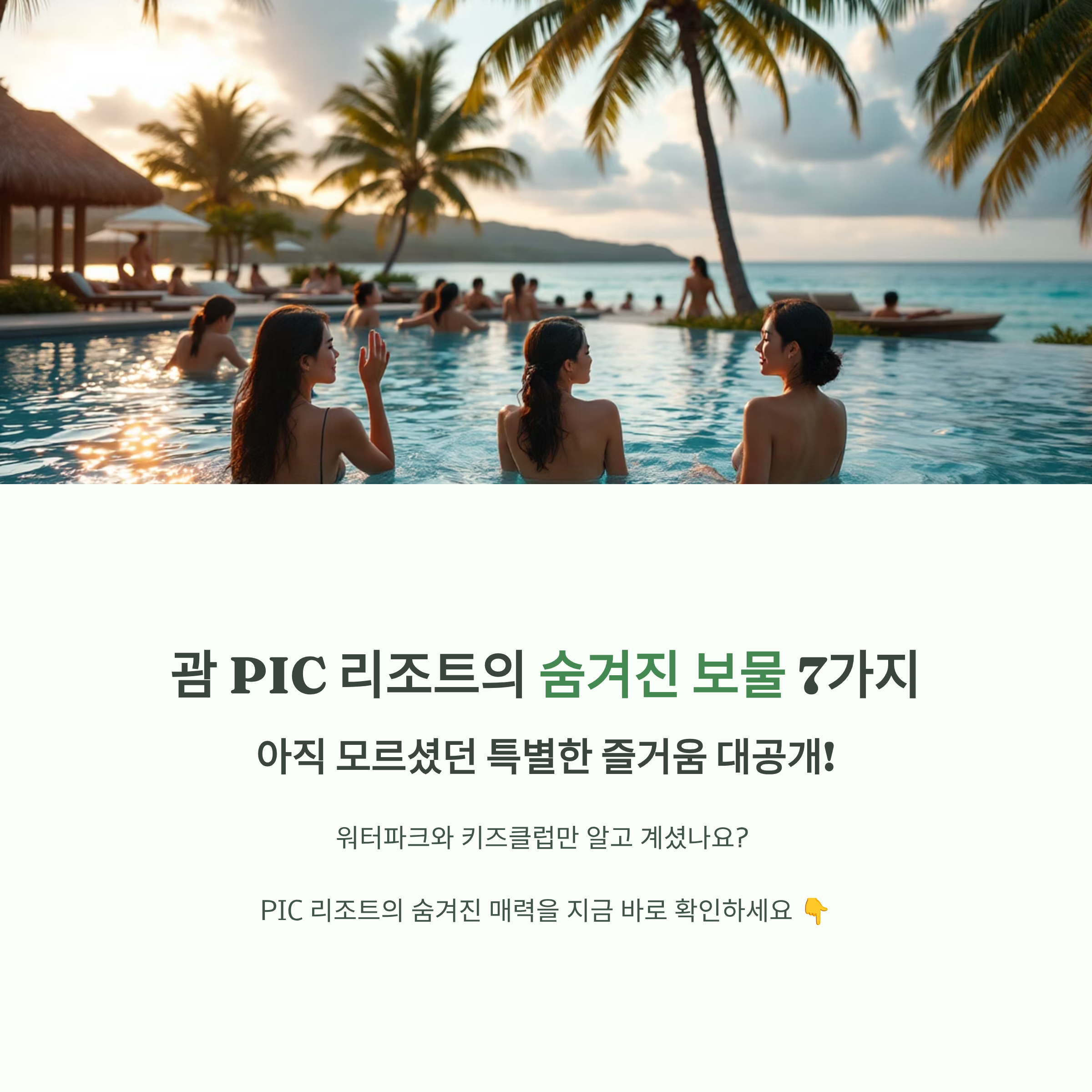 많은 분들이 잘 모르는, PIC에 숨겨진 재미있는 액티비티들이 정말 많아요! 오늘은 리조트 전문가들만 안다는 **숨겨진 액티비티 7가지**를 알려드릴게요. 이 글 하나로 PIC를 200% 즐기는 진정한 꿀팁을 얻어 가세요!