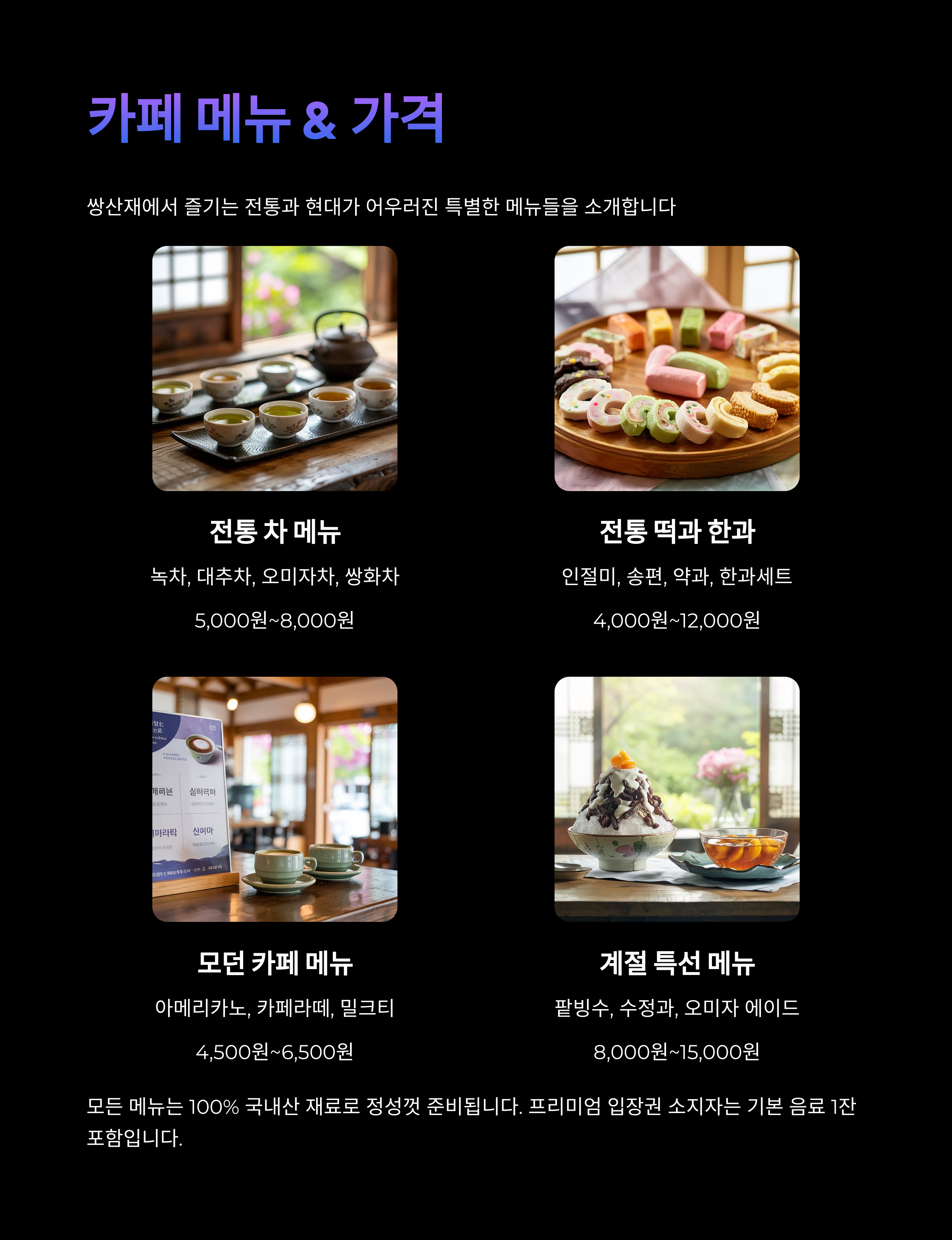 4. 쌍산재 카페 메뉴 & 가격 정보