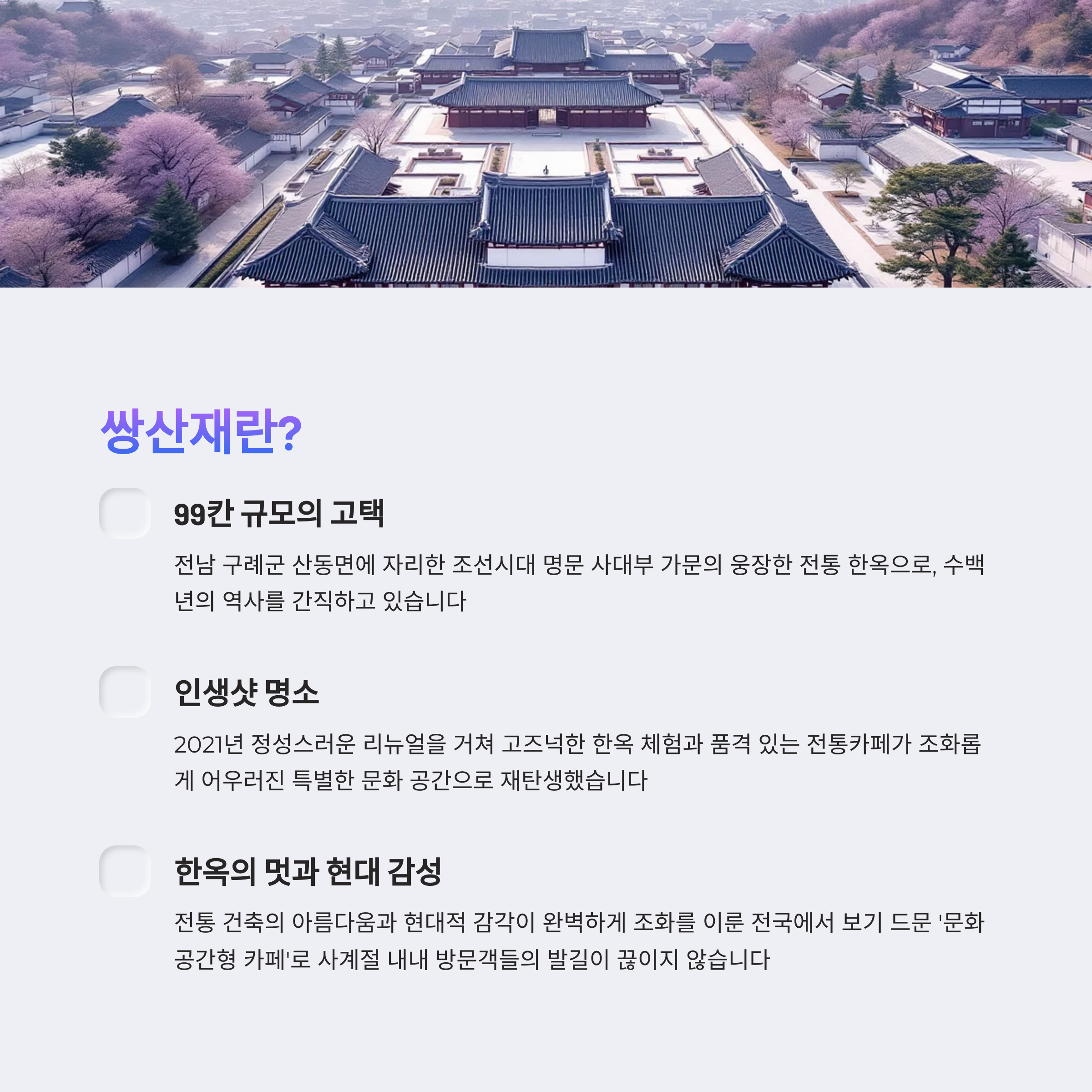 1. 쌍산재란? 99칸 한옥에서 즐기는 전통 감성