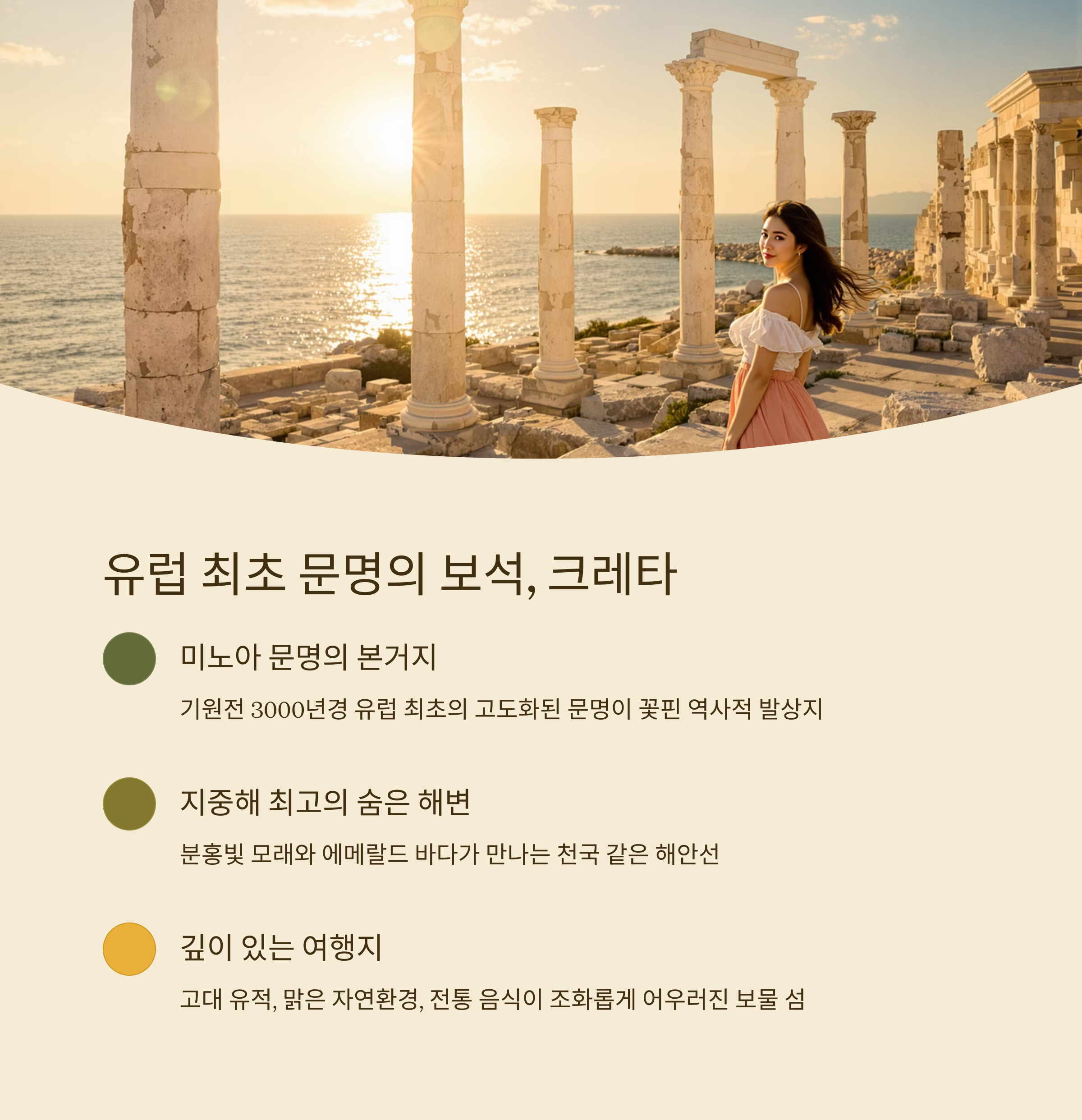 미노아 문명과 에메랄드빛 해변이 공존하는 그리스 최대의 섬