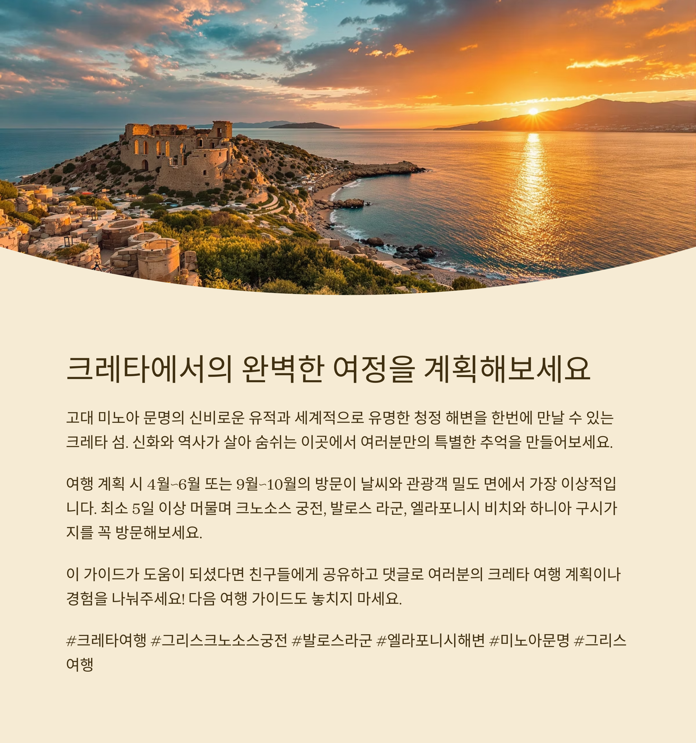 이번 글에서는 크레타 섬에서 추천하는 역사적 명소와 해변 핫스팟을 소개합니다.