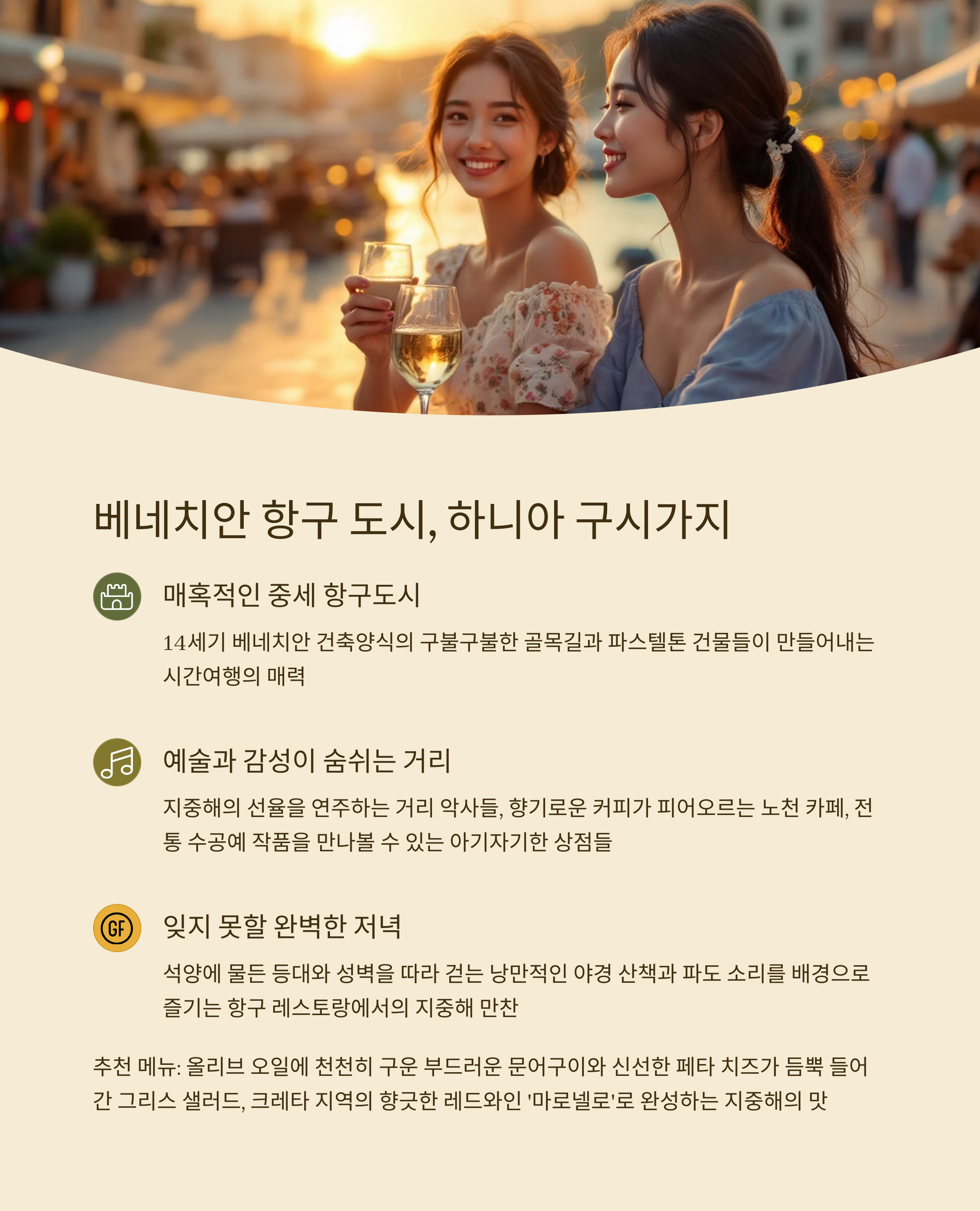 - 야경 산책 + 항구 근처 식사로 완벽한 하루 마무리 가능