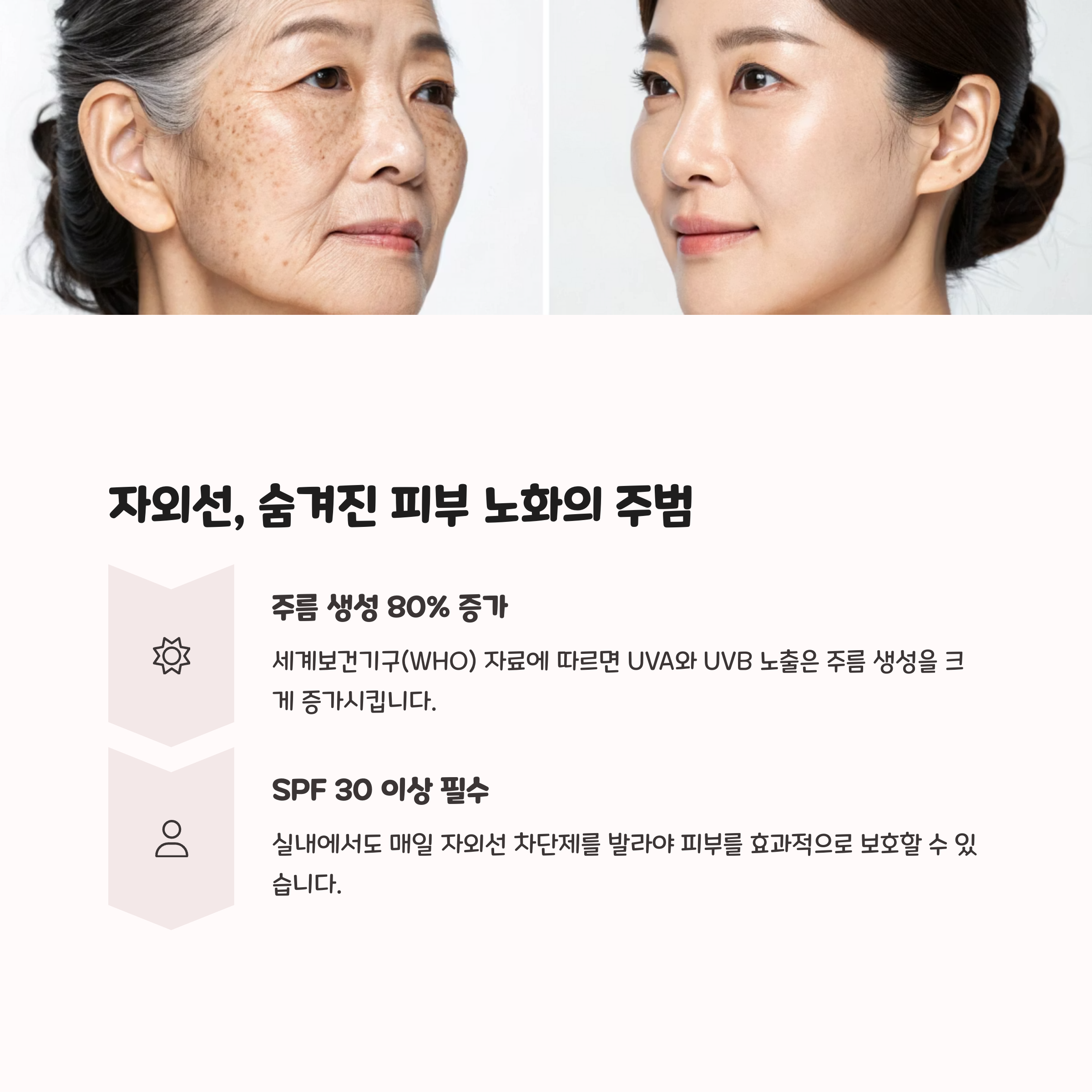 피부는 일상의 누적 결과입니다. 값비싼 화장품보다 규칙적인 수면, 클렌징, 식단, 자외선 차단이 훨씬 더 큰 영향을 미칩니다. 피부 나이를 되돌리는 루틴은 피부가 아닌 생활 속 작은 선택에서 시작됩니다.