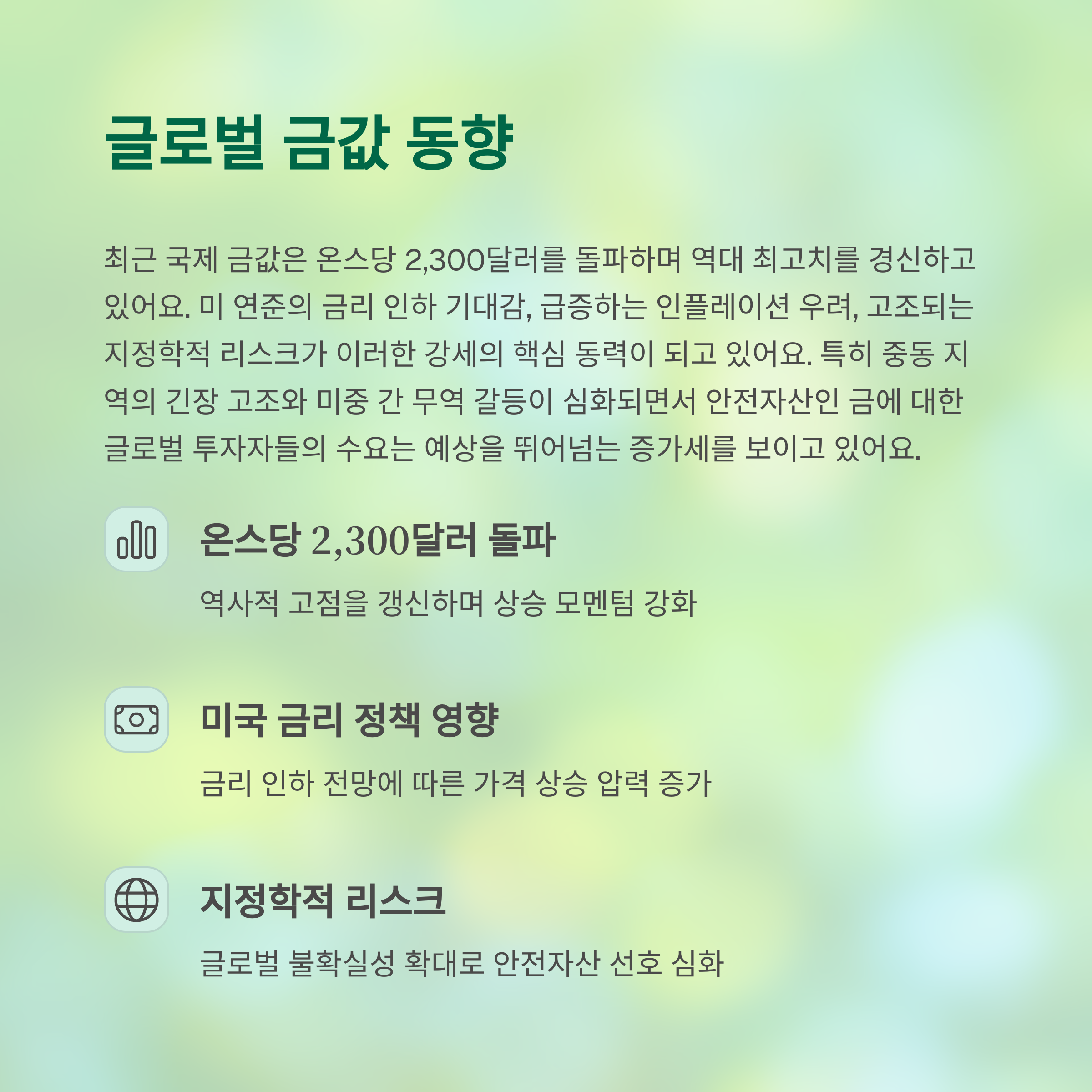 글로벌 리스크 회피 수단으로 금은 여전히 강력한 매력을 지니고 있어요