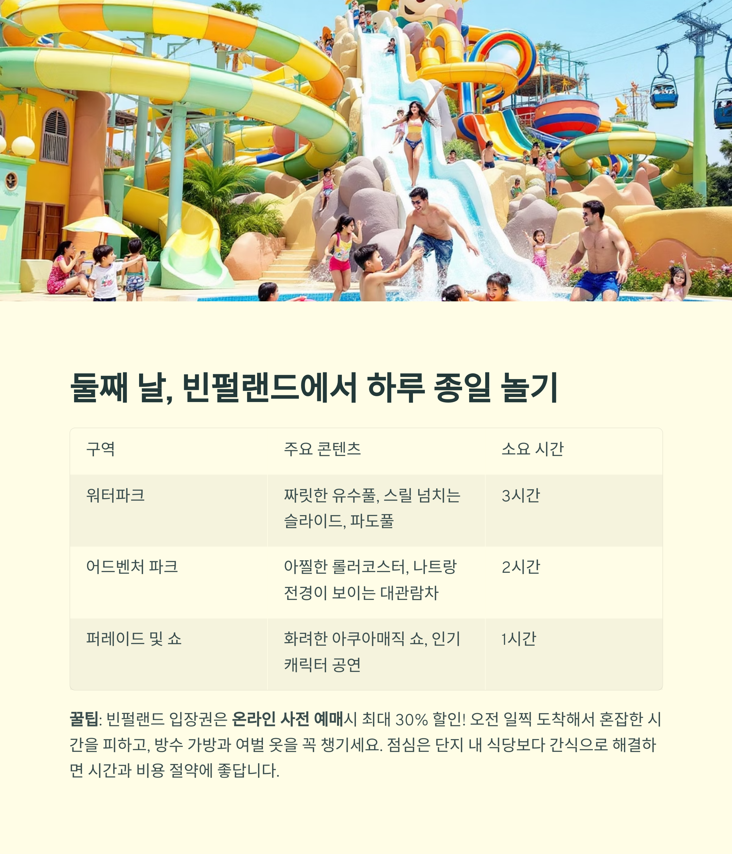 | 2일차 | 빈펄랜드 종일 | 놀이공원, 케이블카 |
