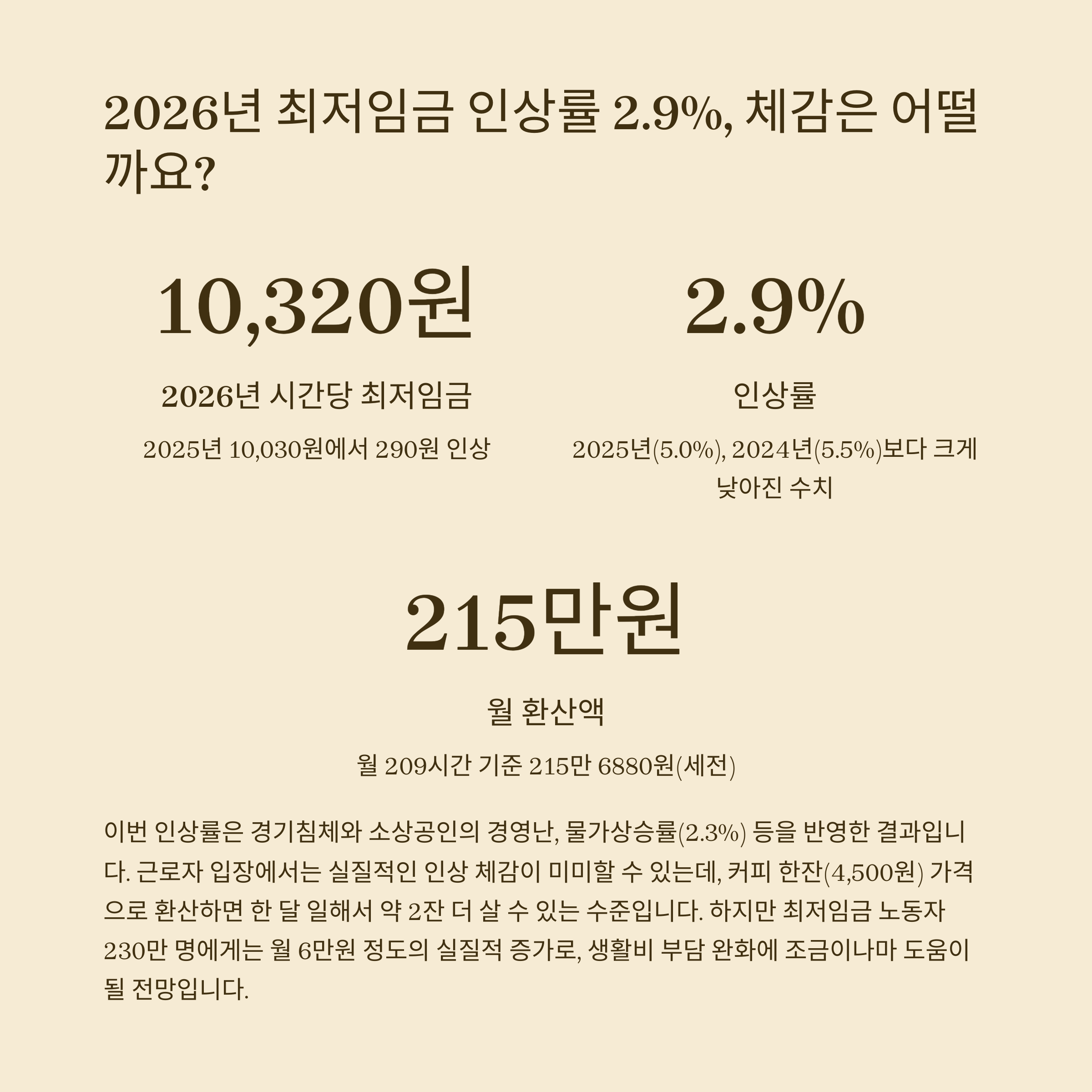 드디어 2026년도 적용 최저임금이 확정됐어요.