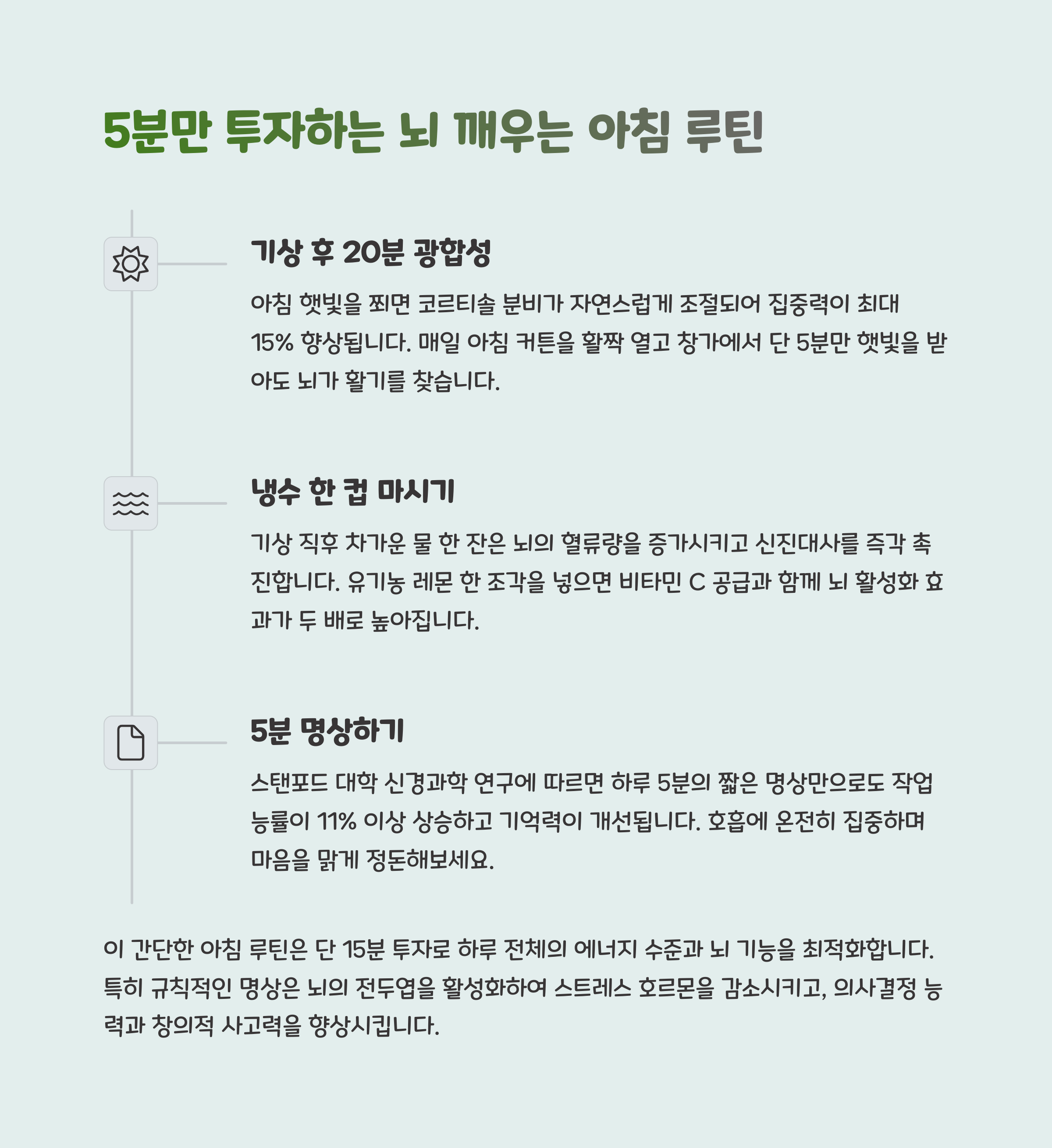 아침 1시간이 하루 뇌 건강을 결정합니다.🌞