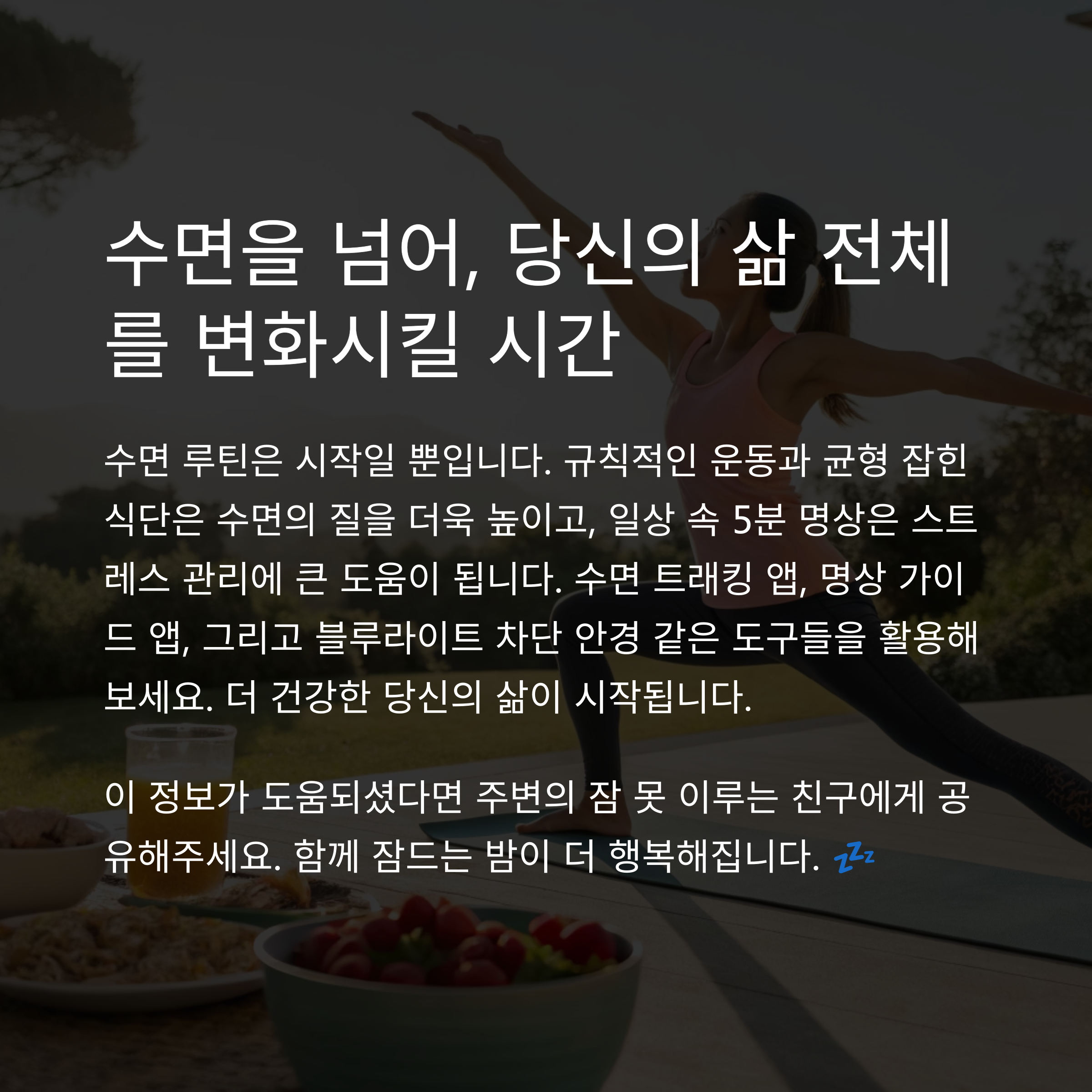 - 잠들기 전 짧은 명상이나 스트레칭을 해보세요.