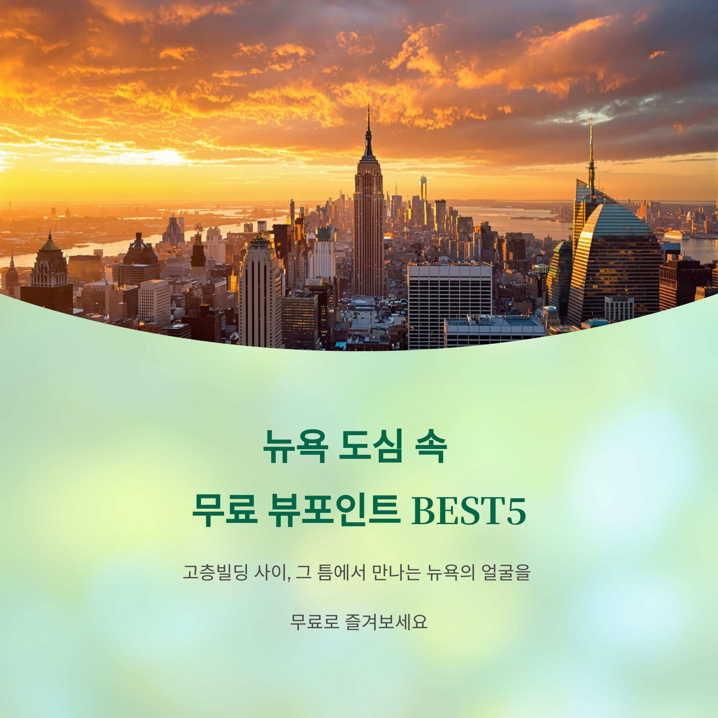 이번 글에선 현지인과 여행자 모두가 인정한 뉴욕 무료 전망 명소 5곳을