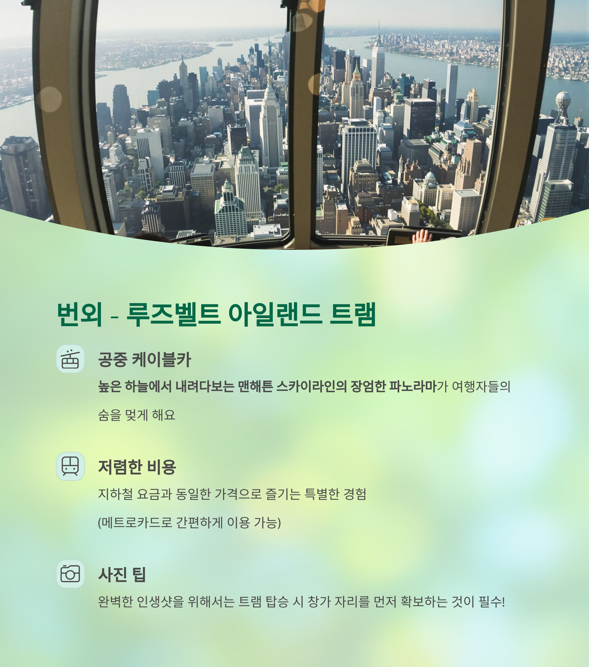 메트로카드로 탑승 가능한 공중 케이블카.
