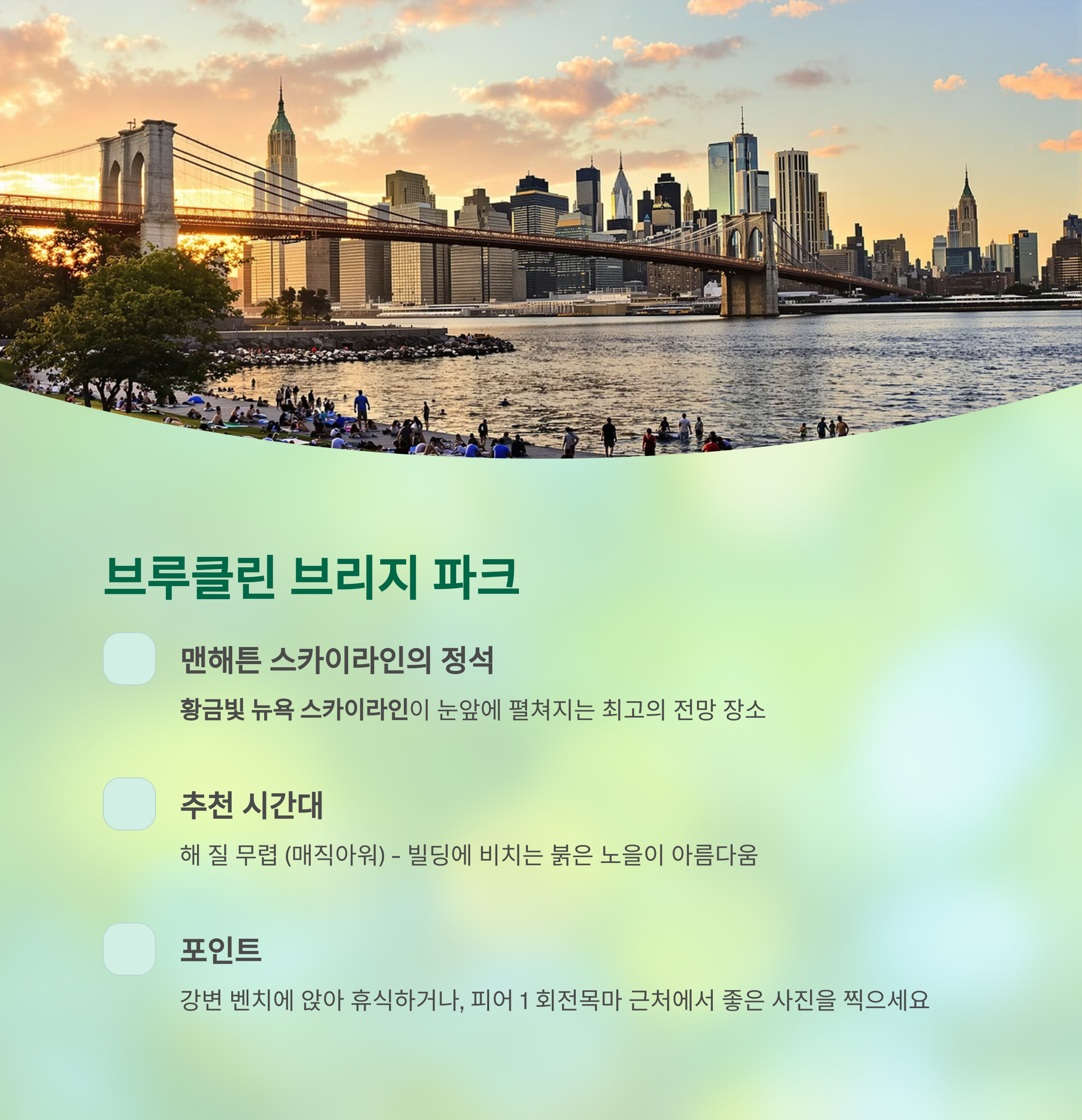 ① 브루클린 브리지 파크 – 맨해튼 스카이라인의 정석