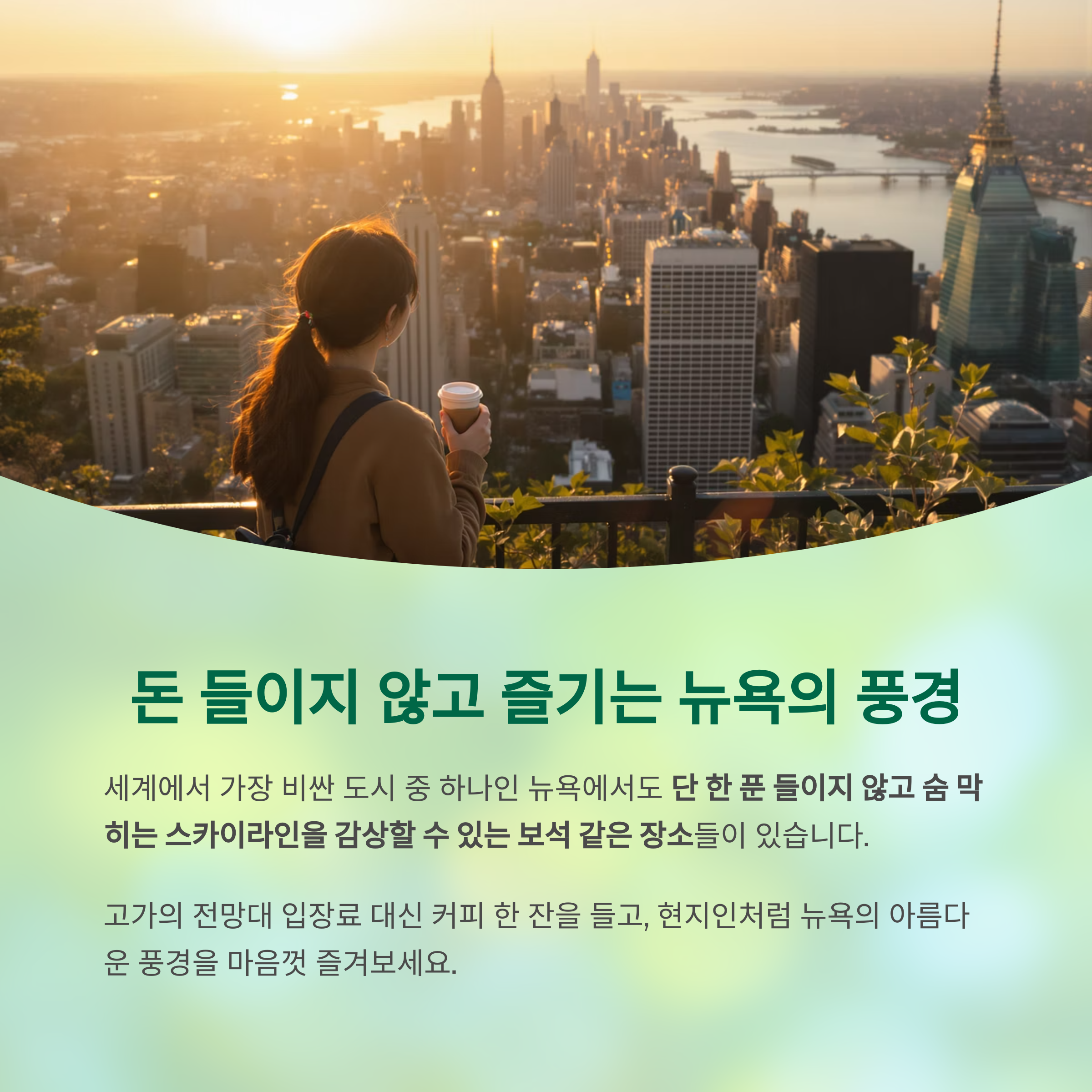 전망대 입장료 대신 커피 한 잔으로, 뉴욕의 풍경을 가슴에 담아보세요.