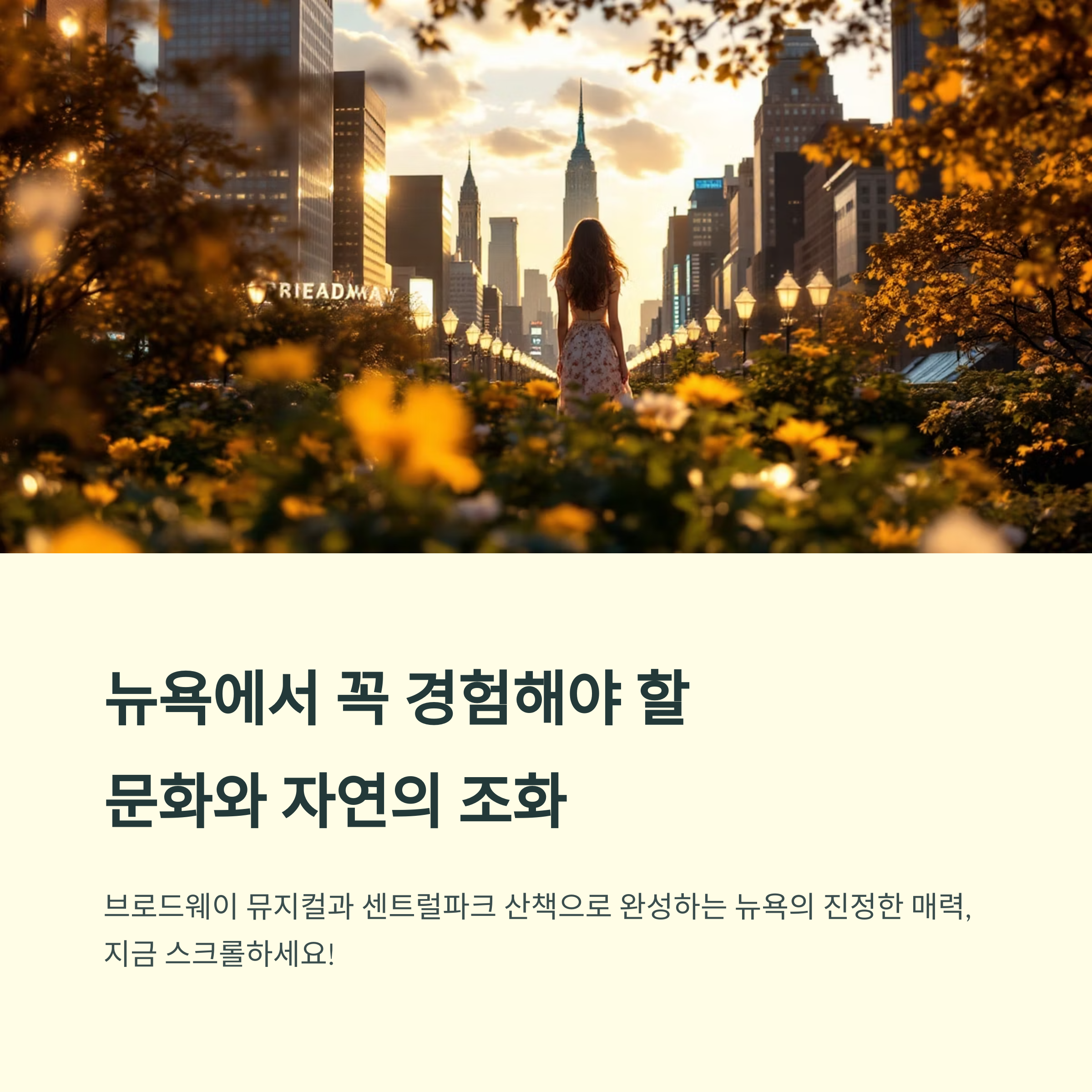 이 글에서는 브로드웨이 뮤지컬과 센트럴파크 산책을 중심으로