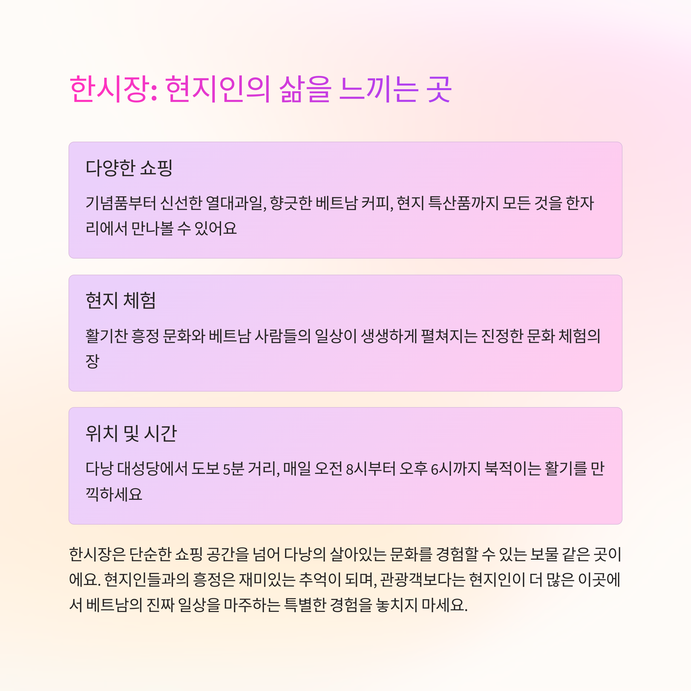 다낭에서 쇼핑과 체험을 동시에 즐길 수 있는 대표 시장이에요