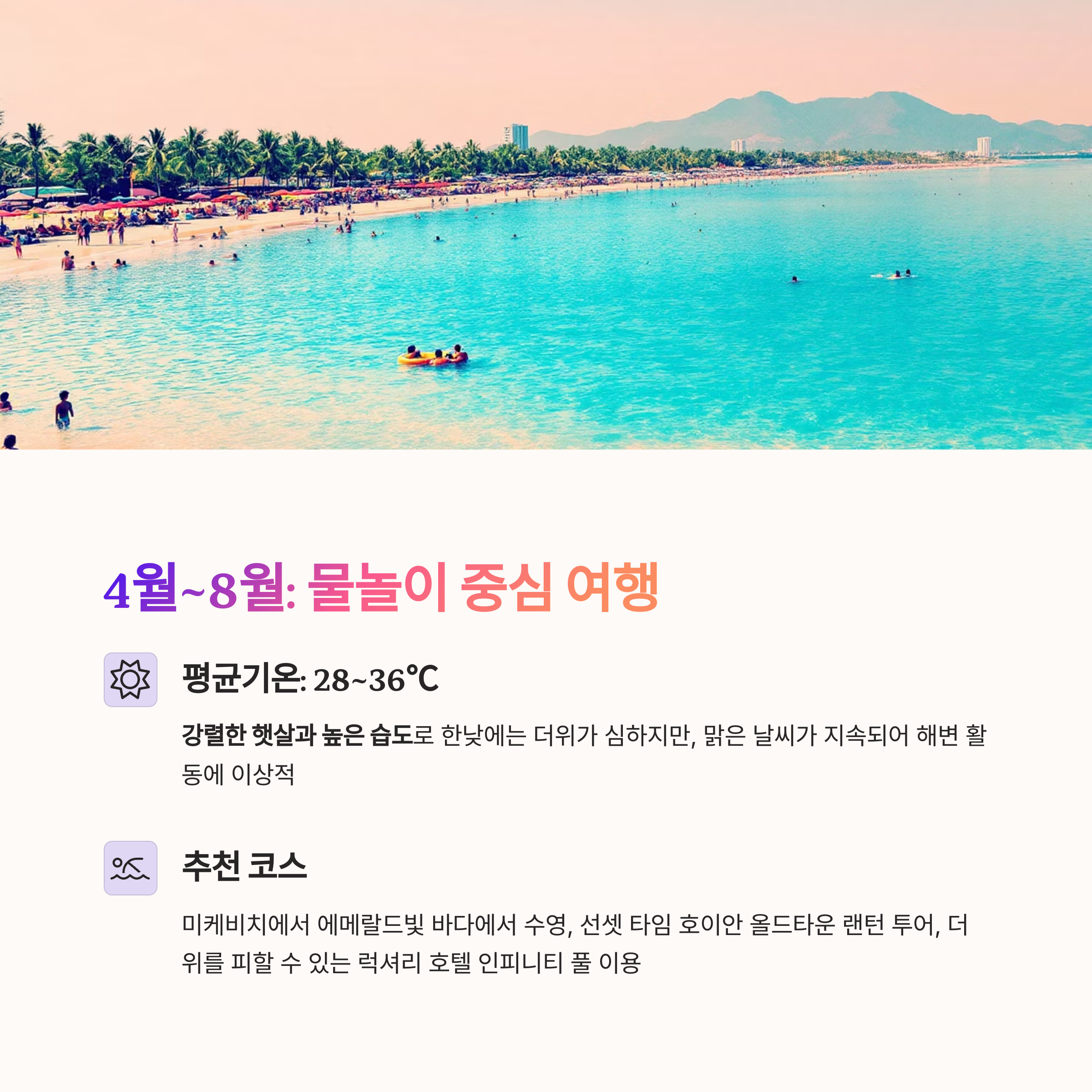 2. 4월~8월: 햇살 강한 건기, 물놀이와 액티비티 중심