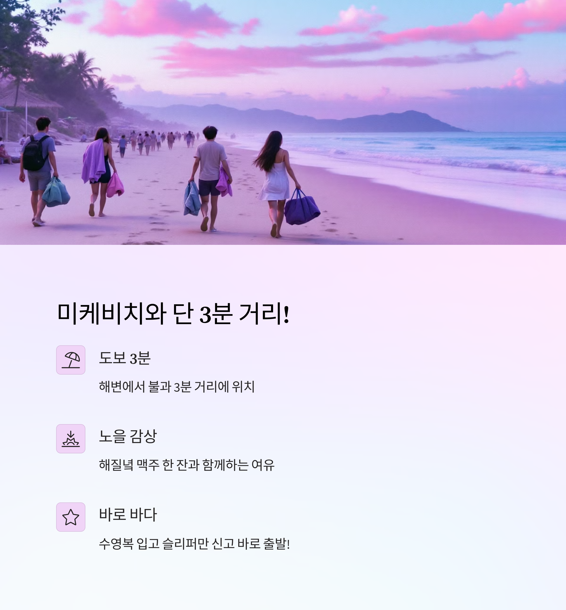해변 바로 앞에서 머무는 경험, 어떨까요?