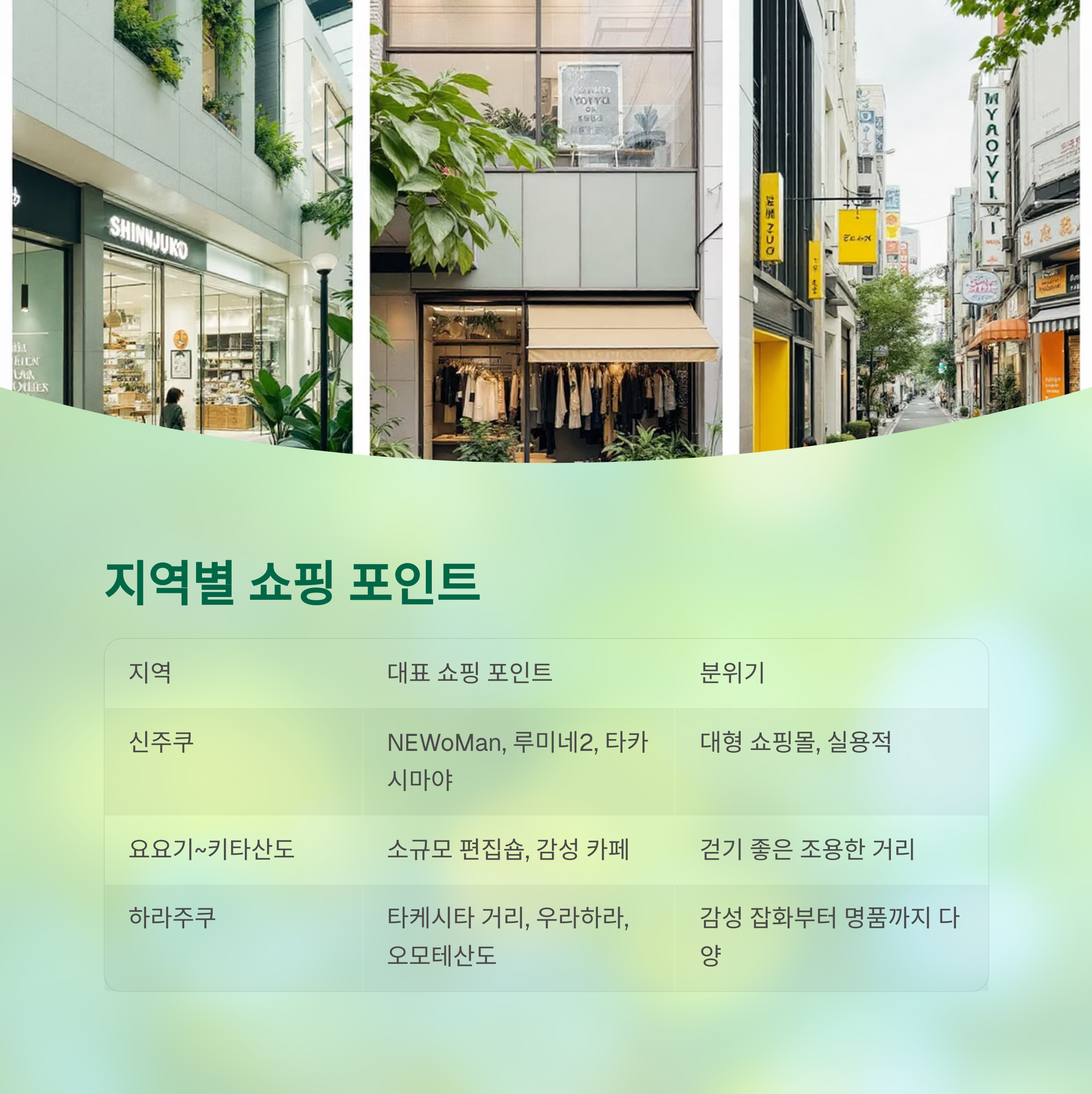 화려한 신주쿠에서 감성 가득 하라주쿠까지, 쇼핑과 산책을 동시에 해봐요