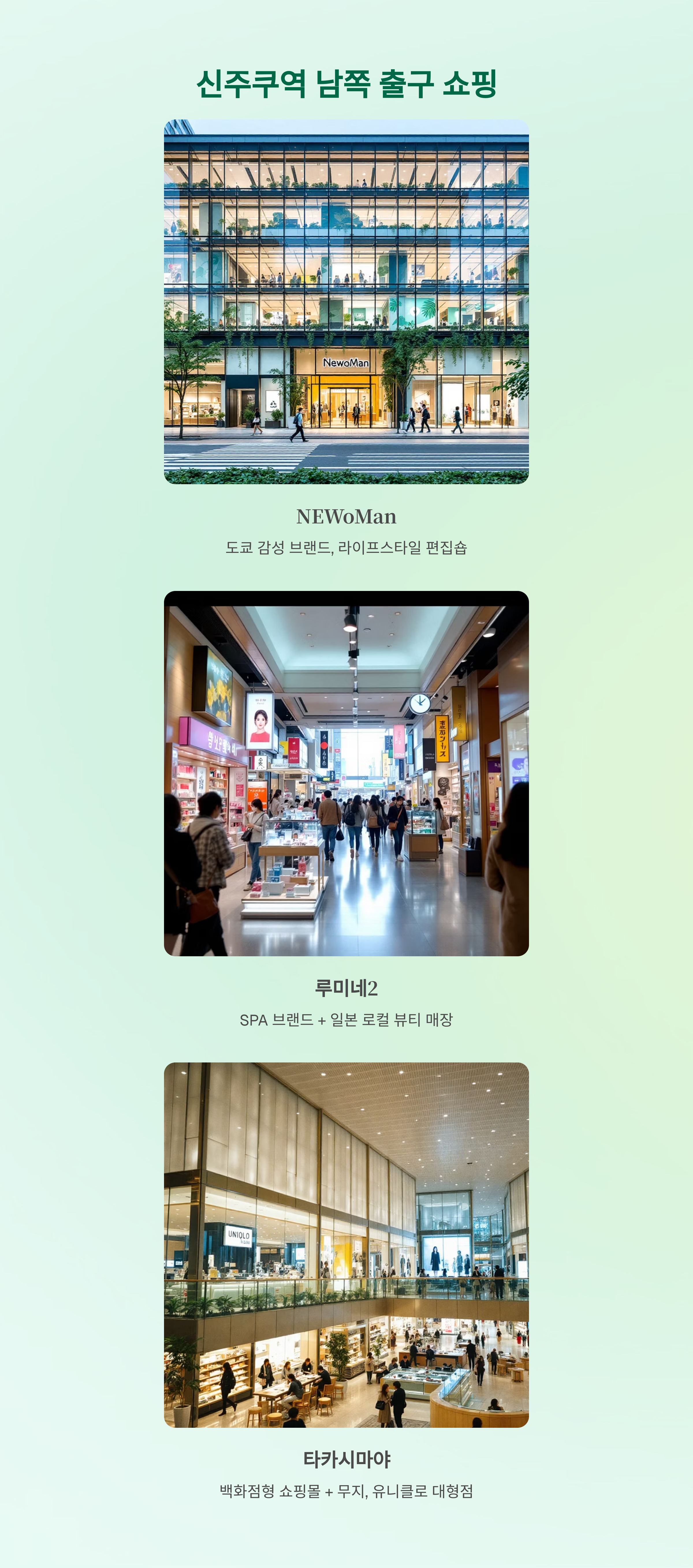 특히 NEWoMan, 루미네2, 타카시마야 타임스퀘어