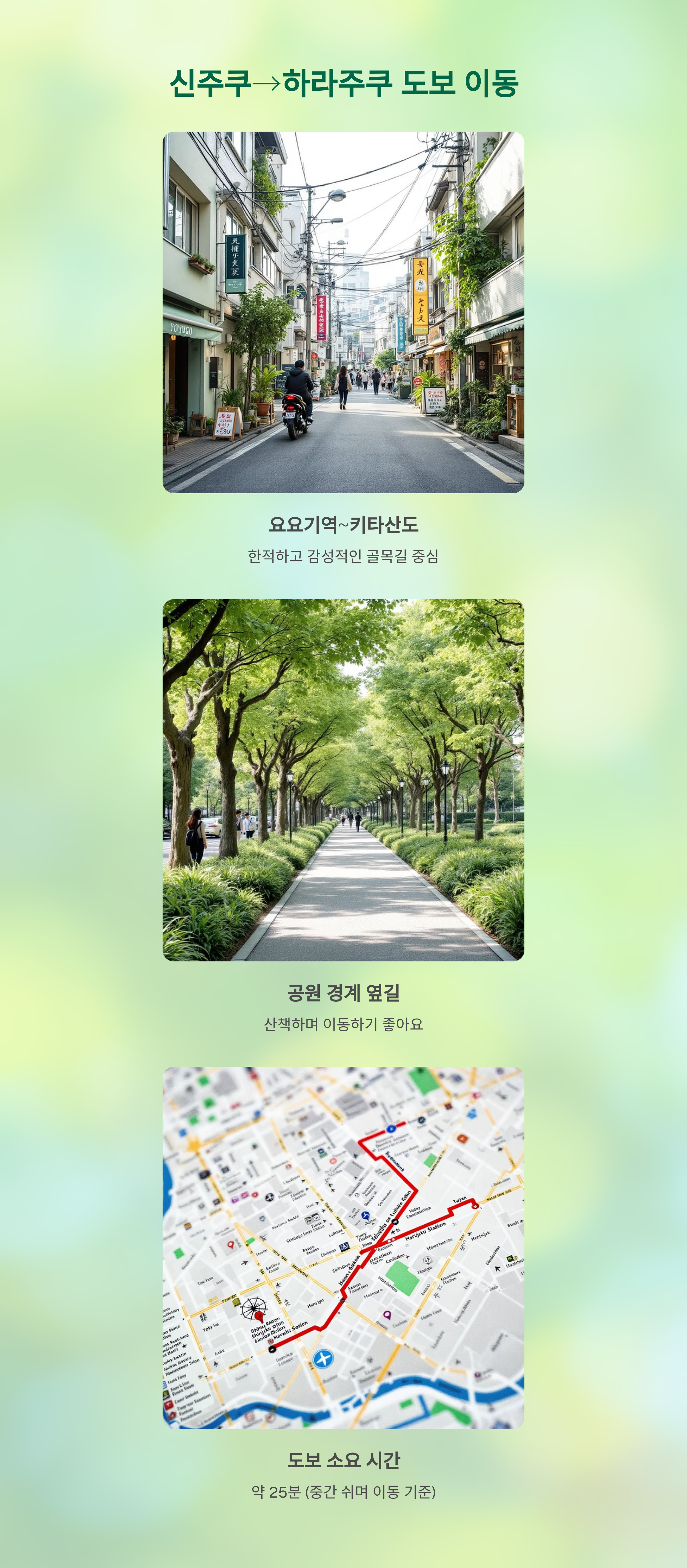 신주쿠에서 하라주쿠까지 이 코스로 움직여보세요.