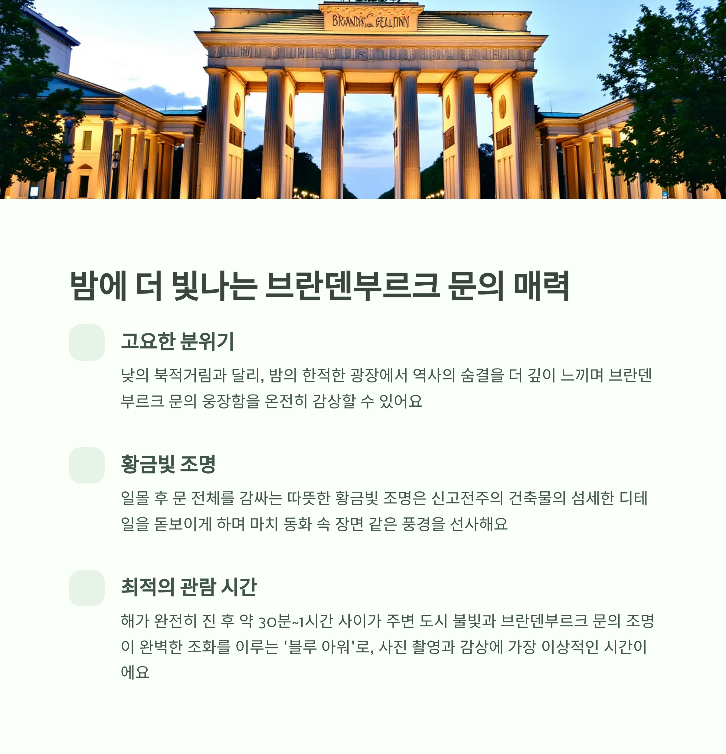 브란덴부르크 문, 밤에 가야 하는 이유는?