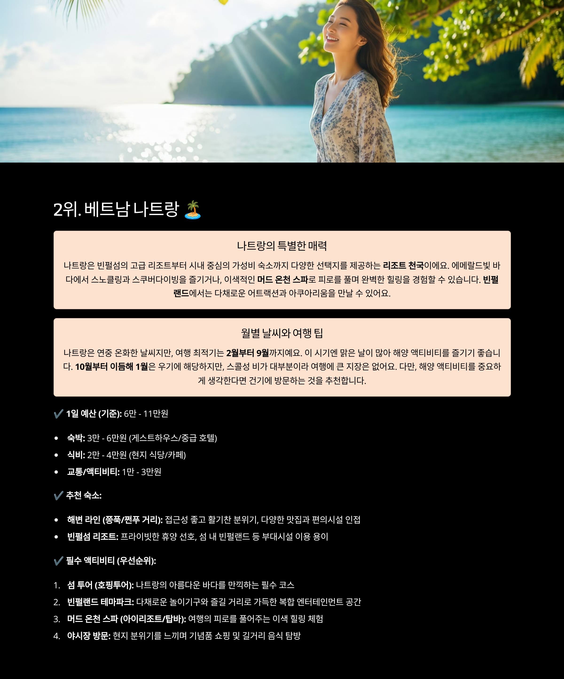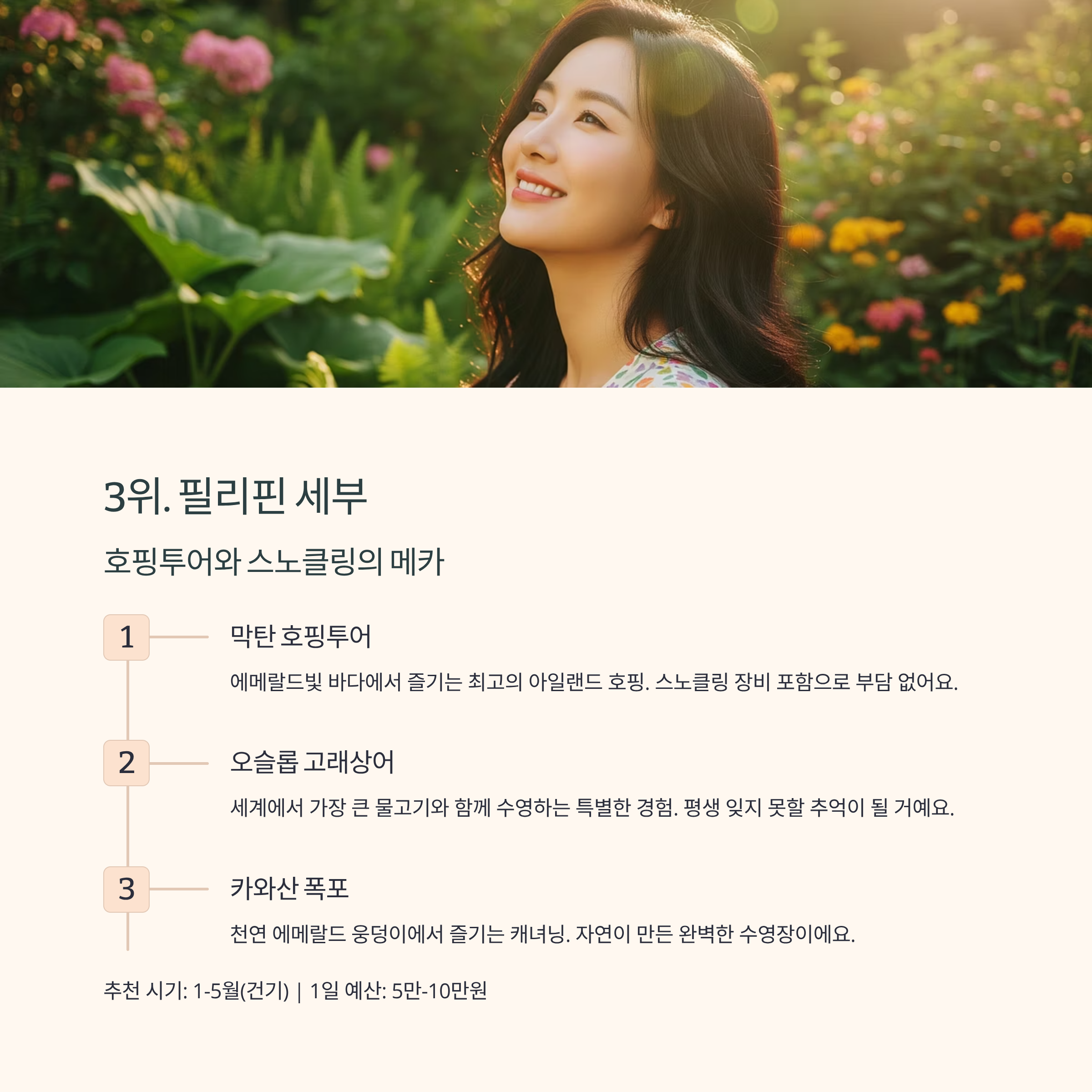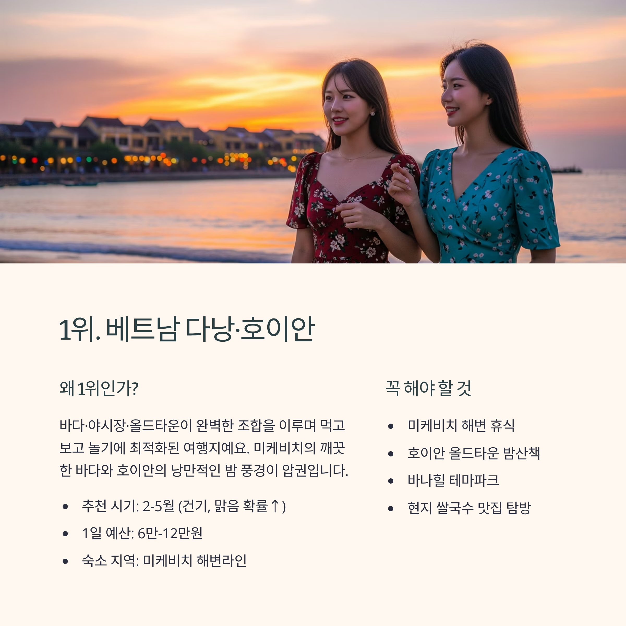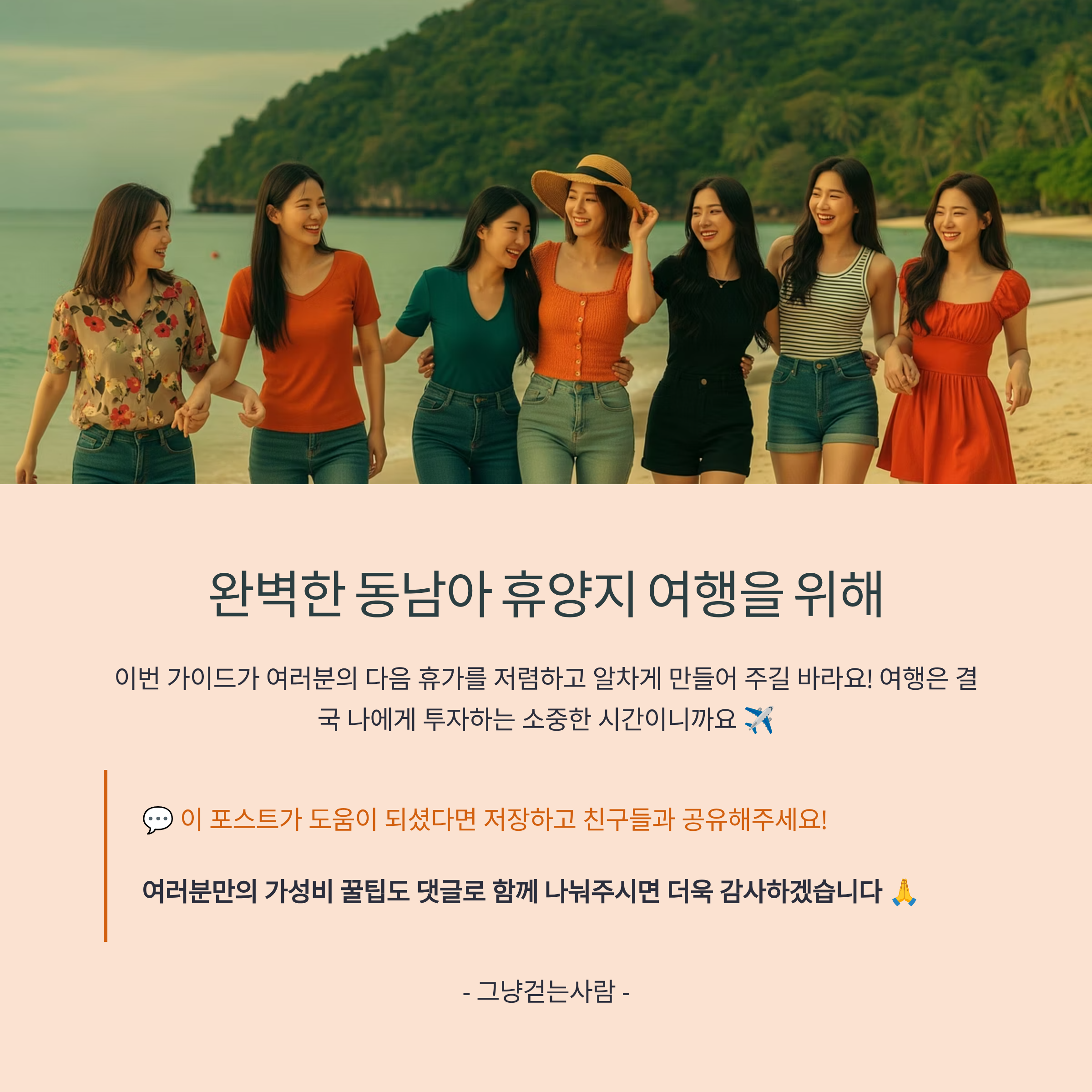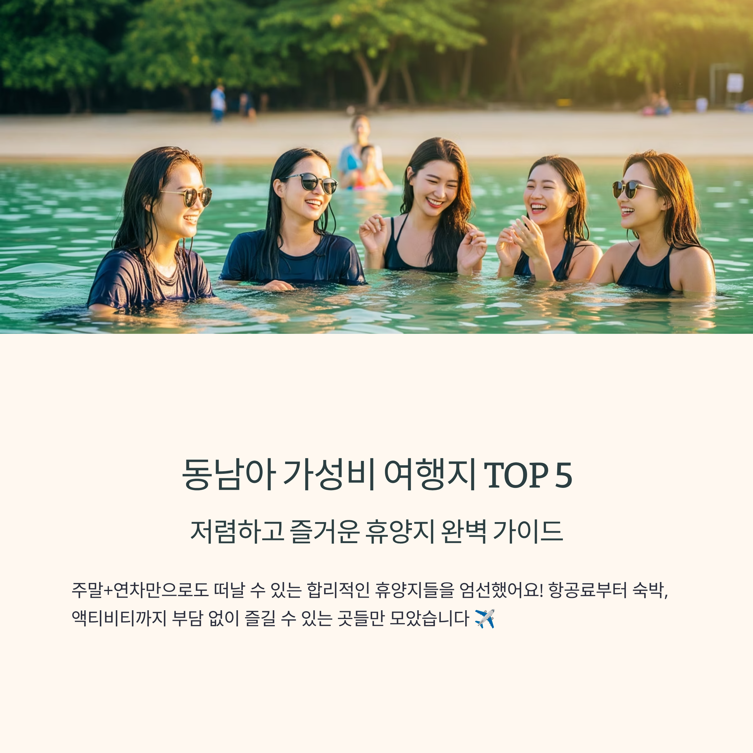 주말+연차만 잘 써도 훌쩍 떠날 수 있는 곳, 바로 동남아 가성비 휴양지죠. 항공권은 합리적이고, 숙소와 식사, 액티비티까지 부담 없이 즐길 수 있어요.