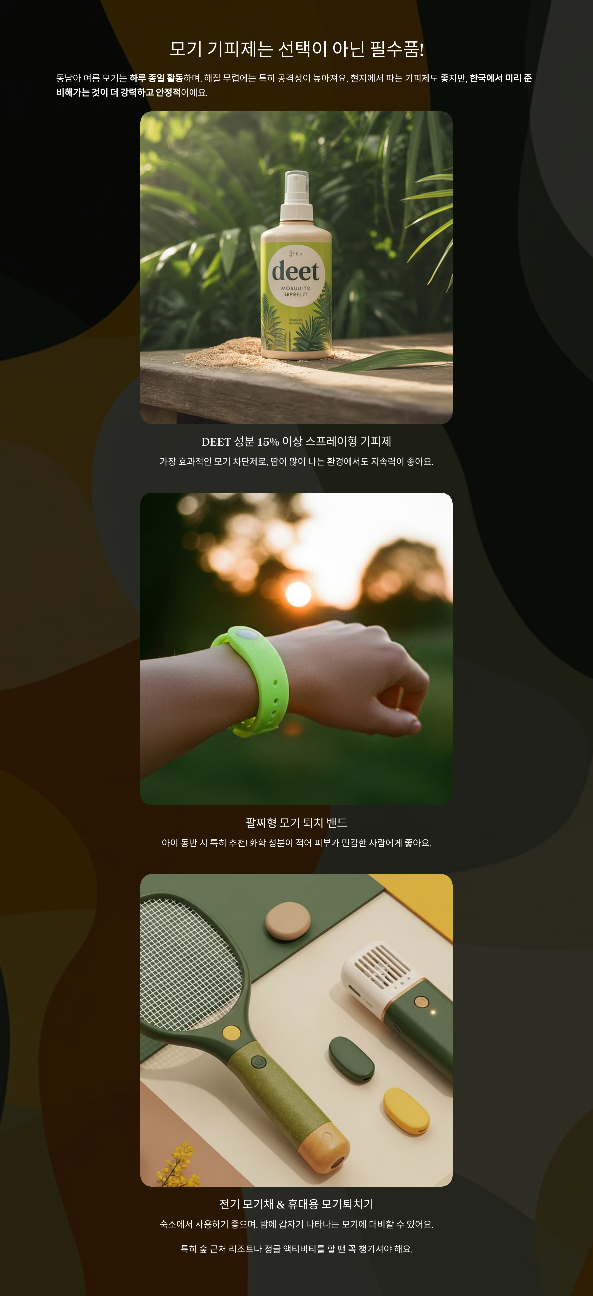 - 팔찌형 모기 퇴치 밴드 (아이 동반 시 추천)