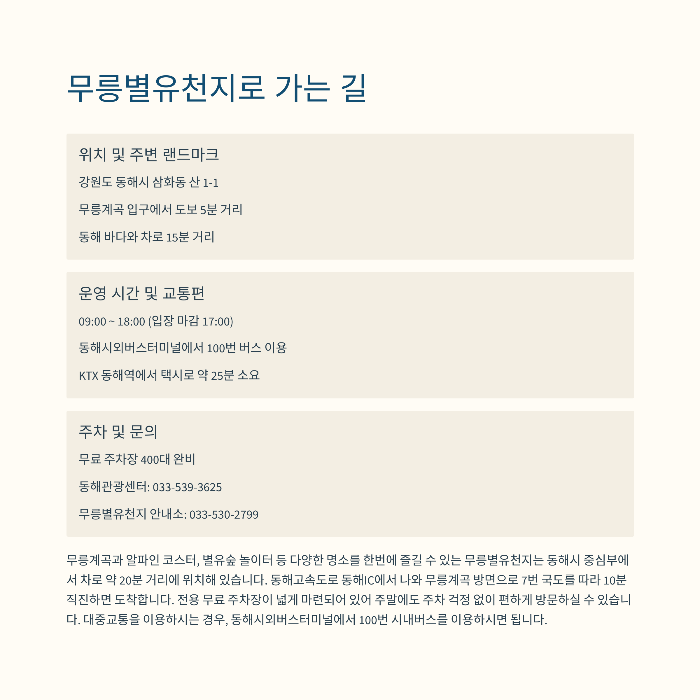 | 대표 명소 | 무릉계곡, 알파인 코스터, 별유숲 놀이터 |