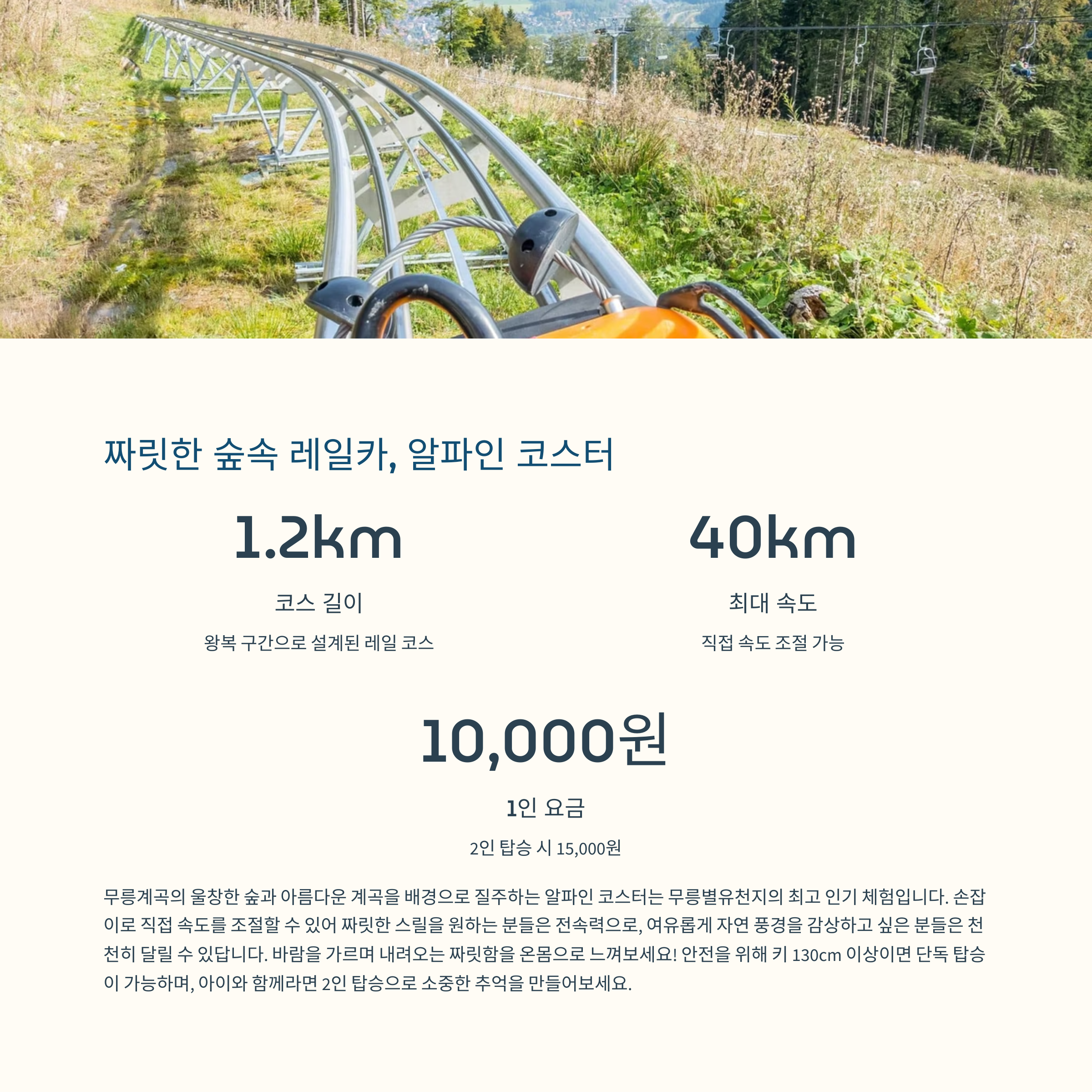 | 종합 체험권 | 25,000원 | 알파인 코스터+스카이 글라이더 포함 |