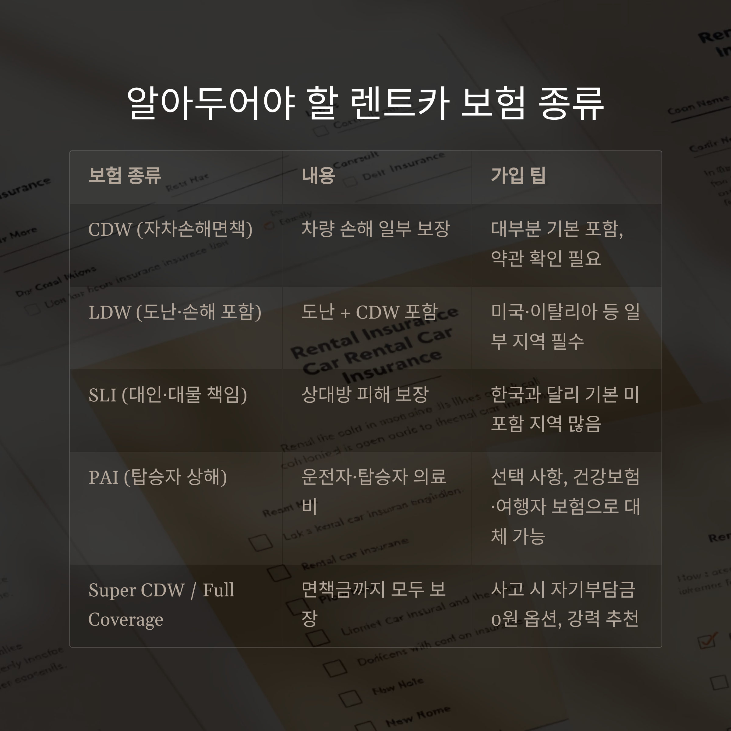 🚘 주요 렌트카 보험 종류