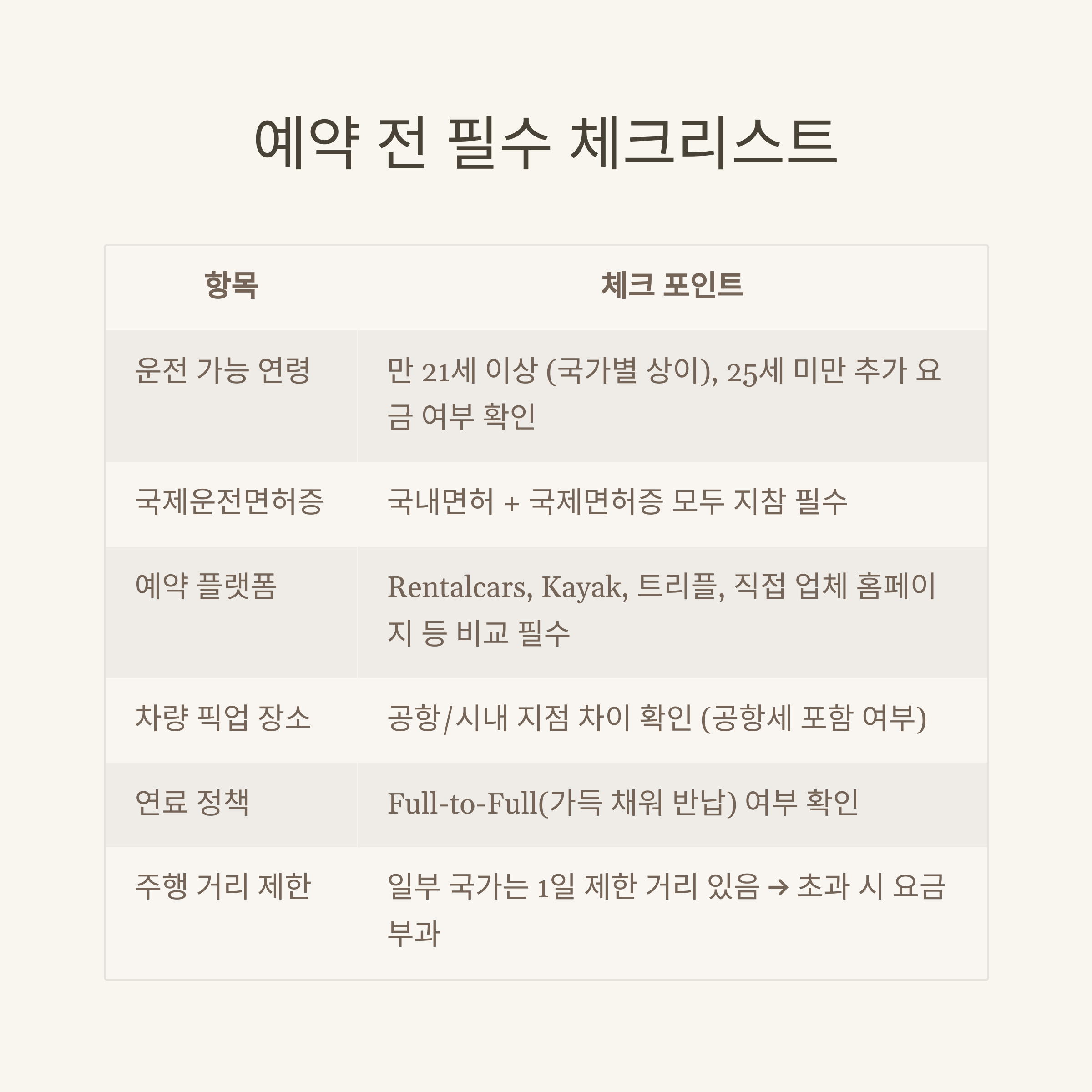 ✅ 렌트카 예약 전 필수 확인 사항
