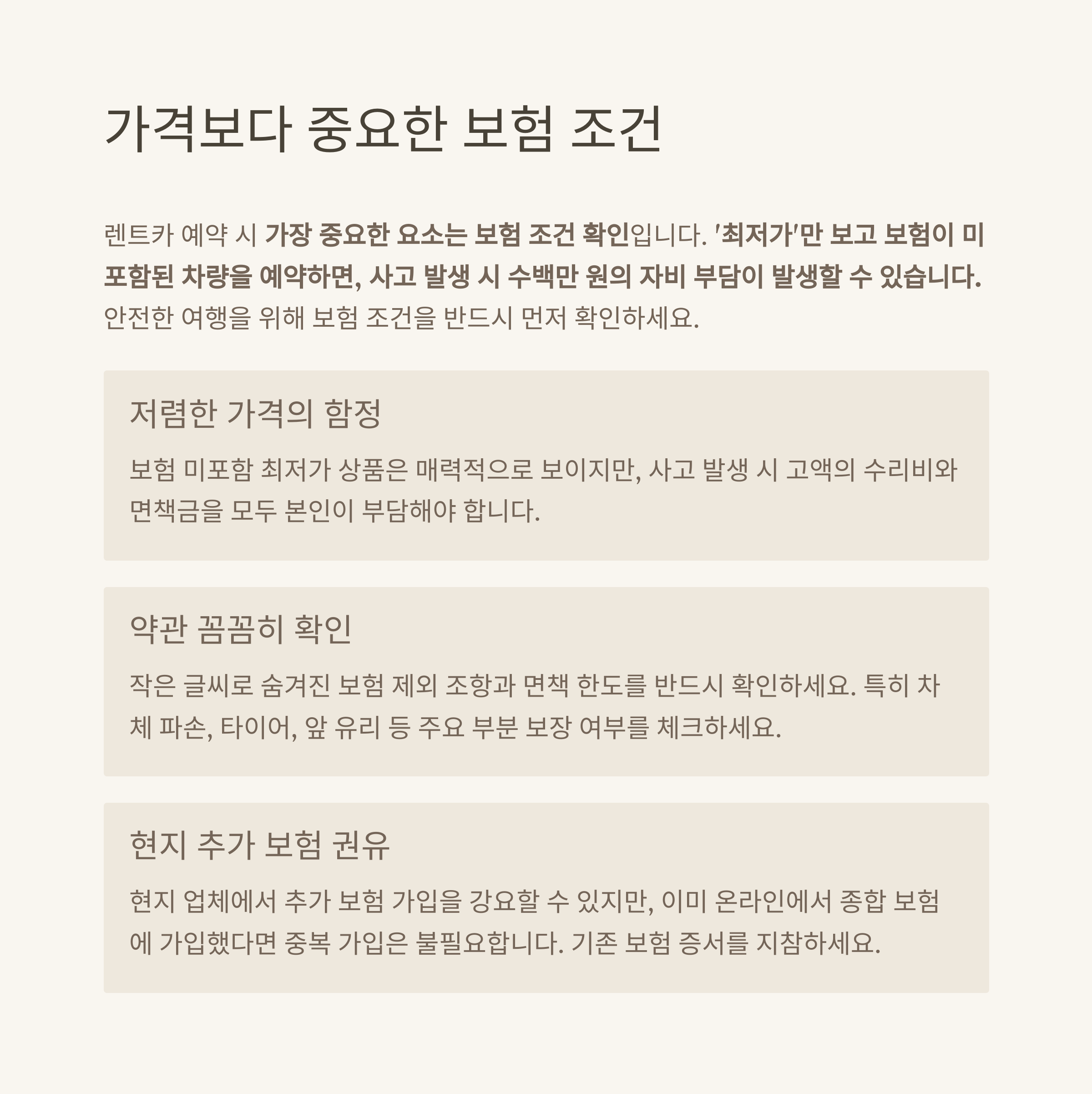 💡 예약 시 가격보다 중요한 보험 조건