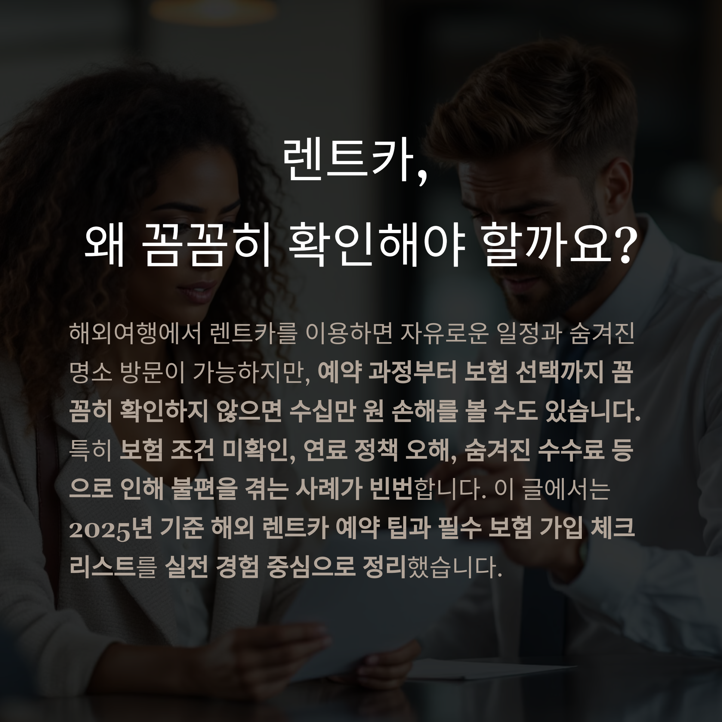 예약 과정부터 보험 선택까지 꼼꼼히 확인하지 않으면 수십만 원 손해를 볼 수도 있습니다.