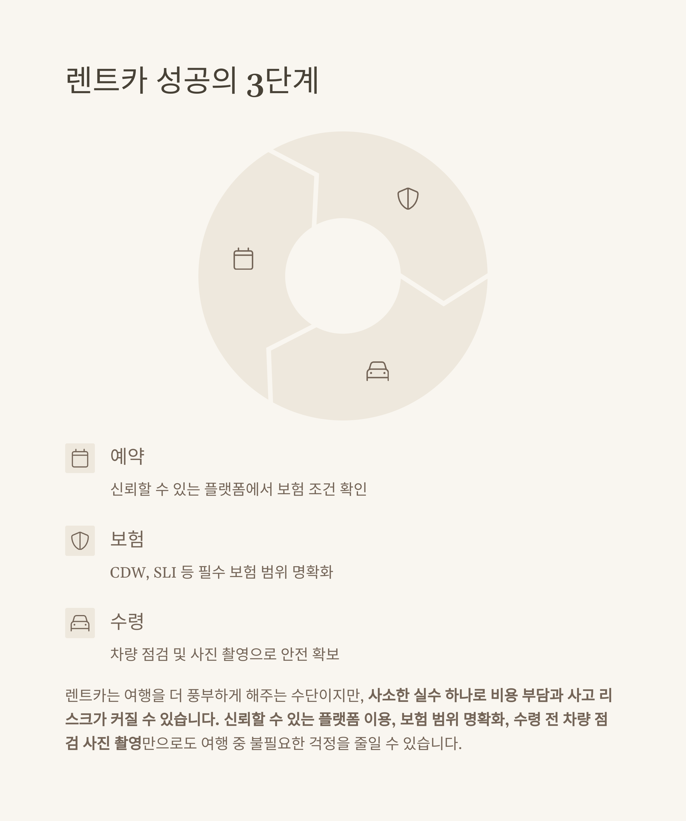 결론: 렌트카는 ‘예약 + 보험 + 수령’ 3단계 꼼꼼히 준비해야