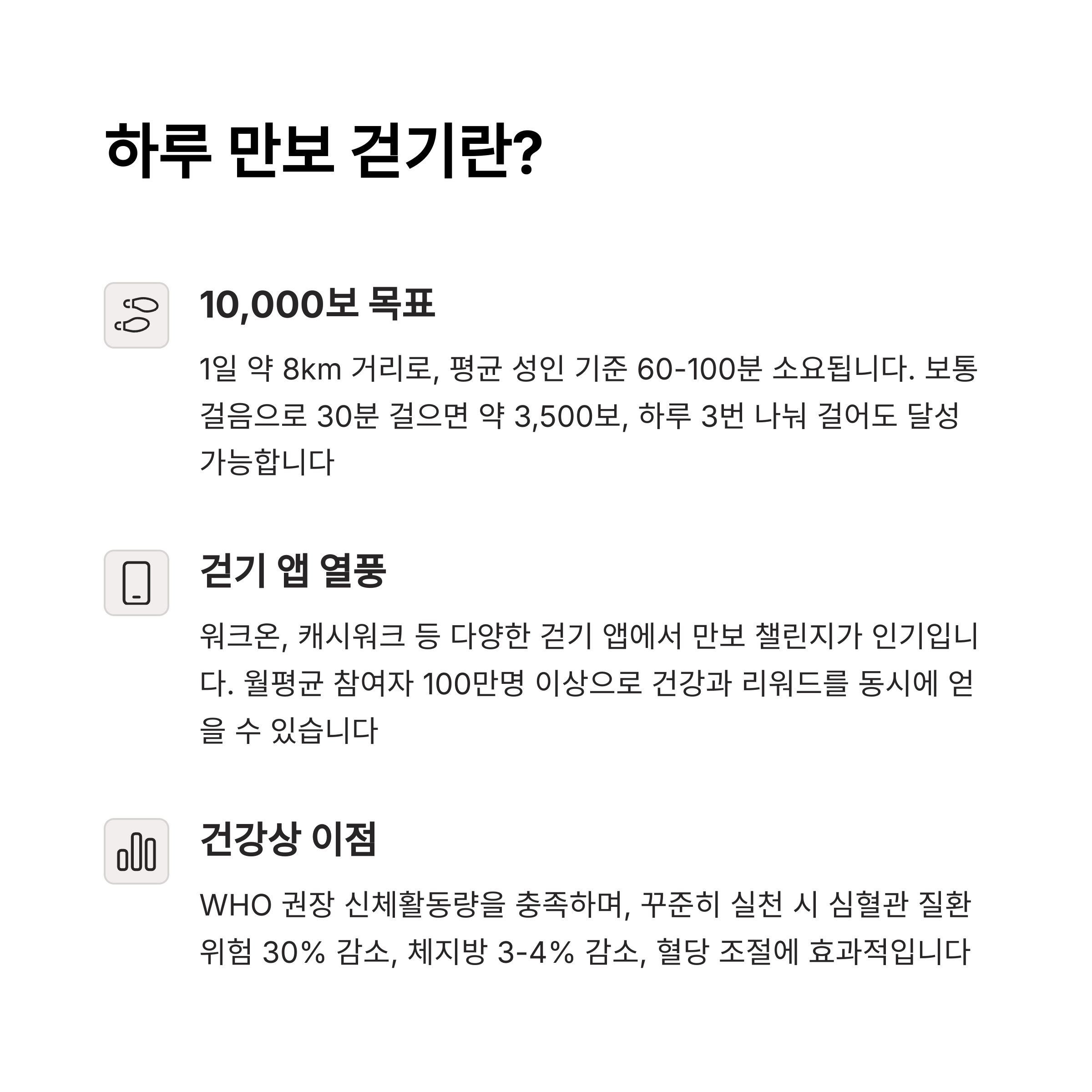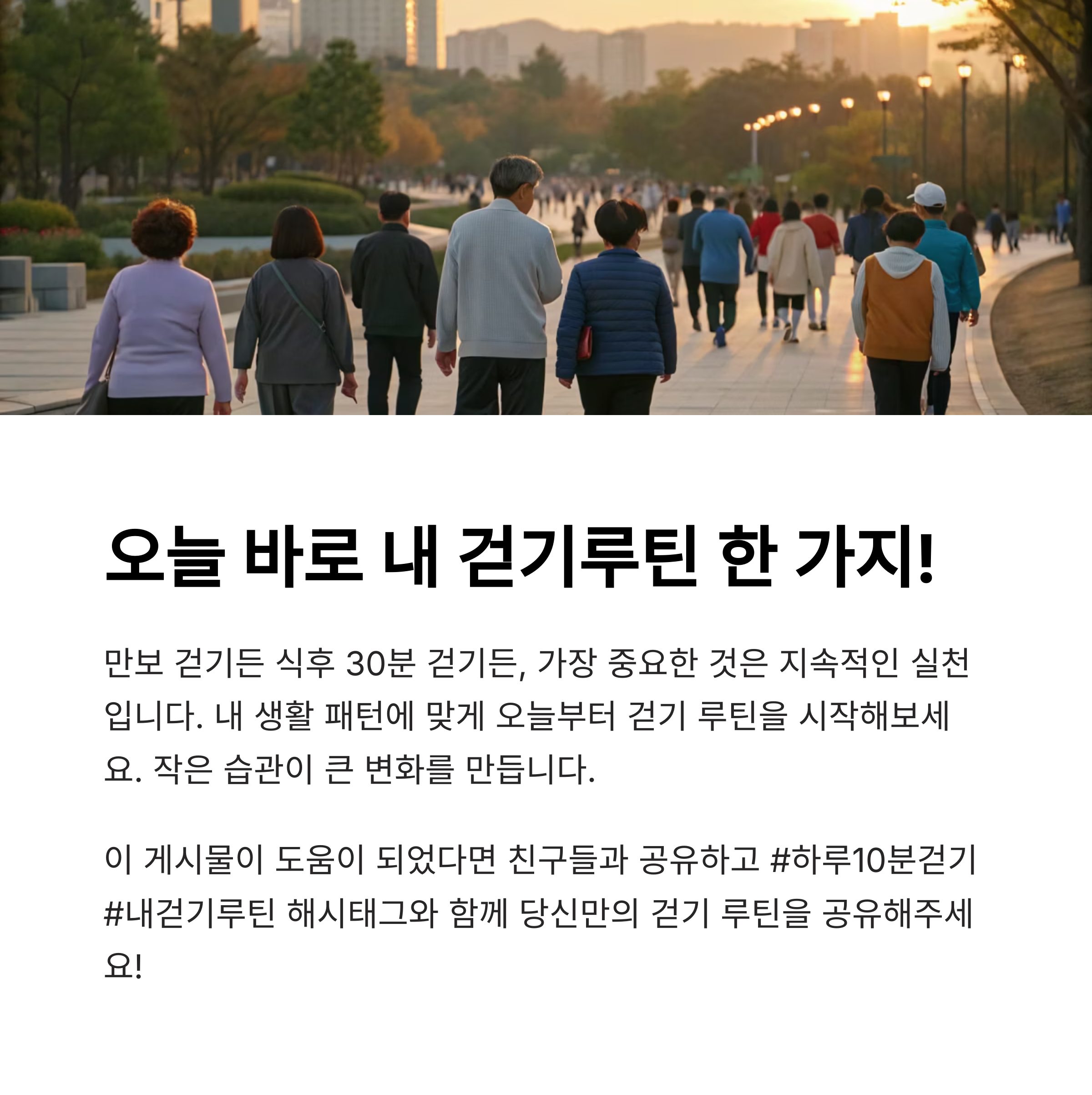 | 주요 키워드 | 만보기록, 식후걷기효과, 걷기운동, 혈당관리운동, 걷기루틴 |