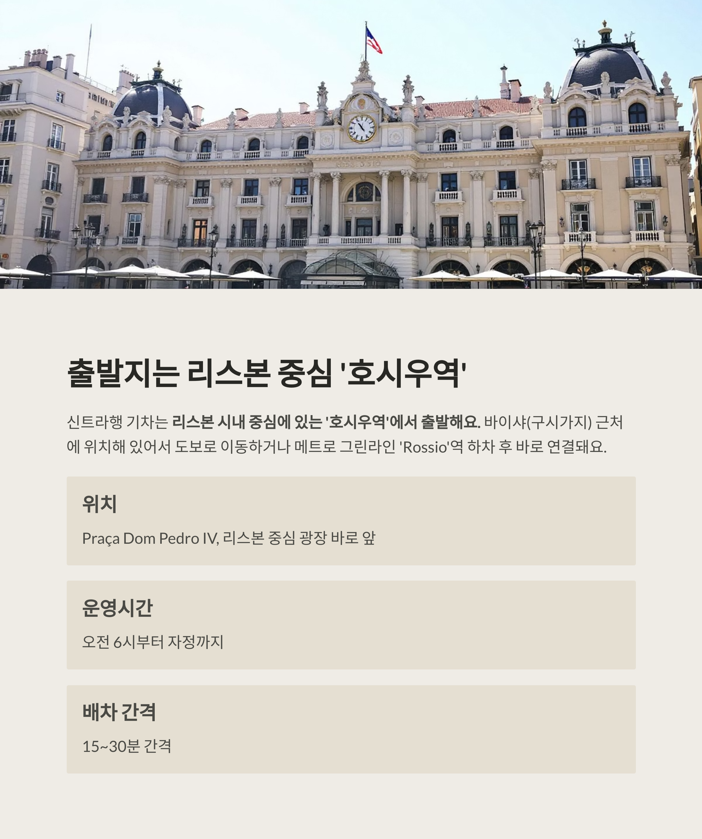 신트라행 기차는 리스본 시내 중심에 있는 ‘호시우역’에서 출발해요.