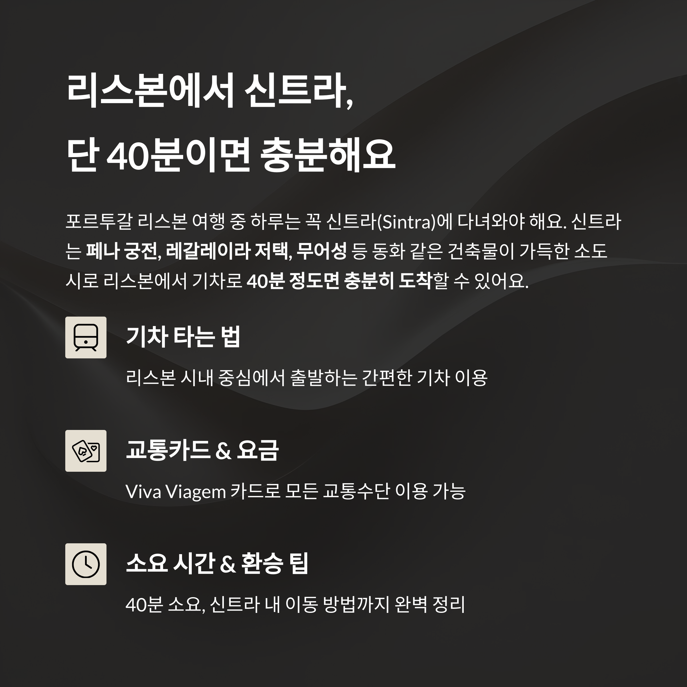 - 리스본(호시우역) → 신트라역까지 약 40~45분 소요