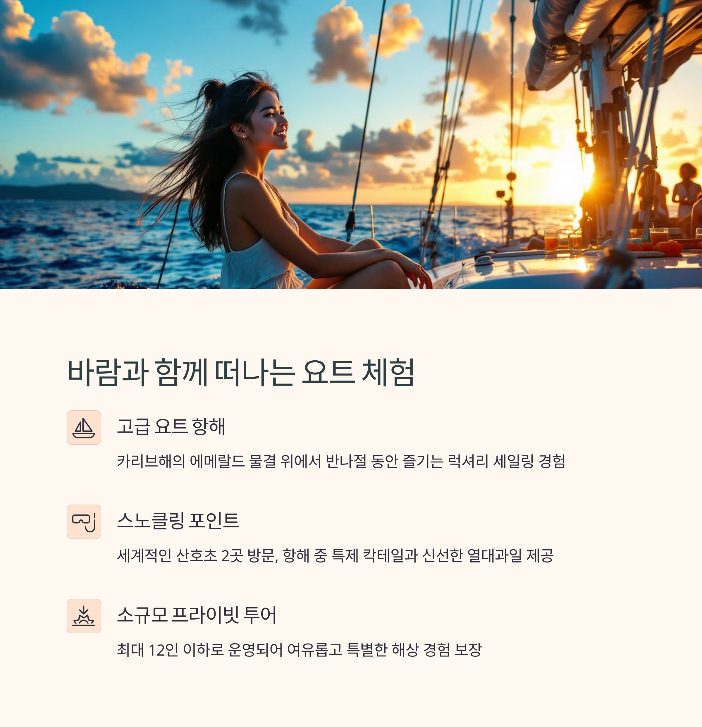 - 고급 요트를 타고 바다 위에서 즐기는 반나절 항해