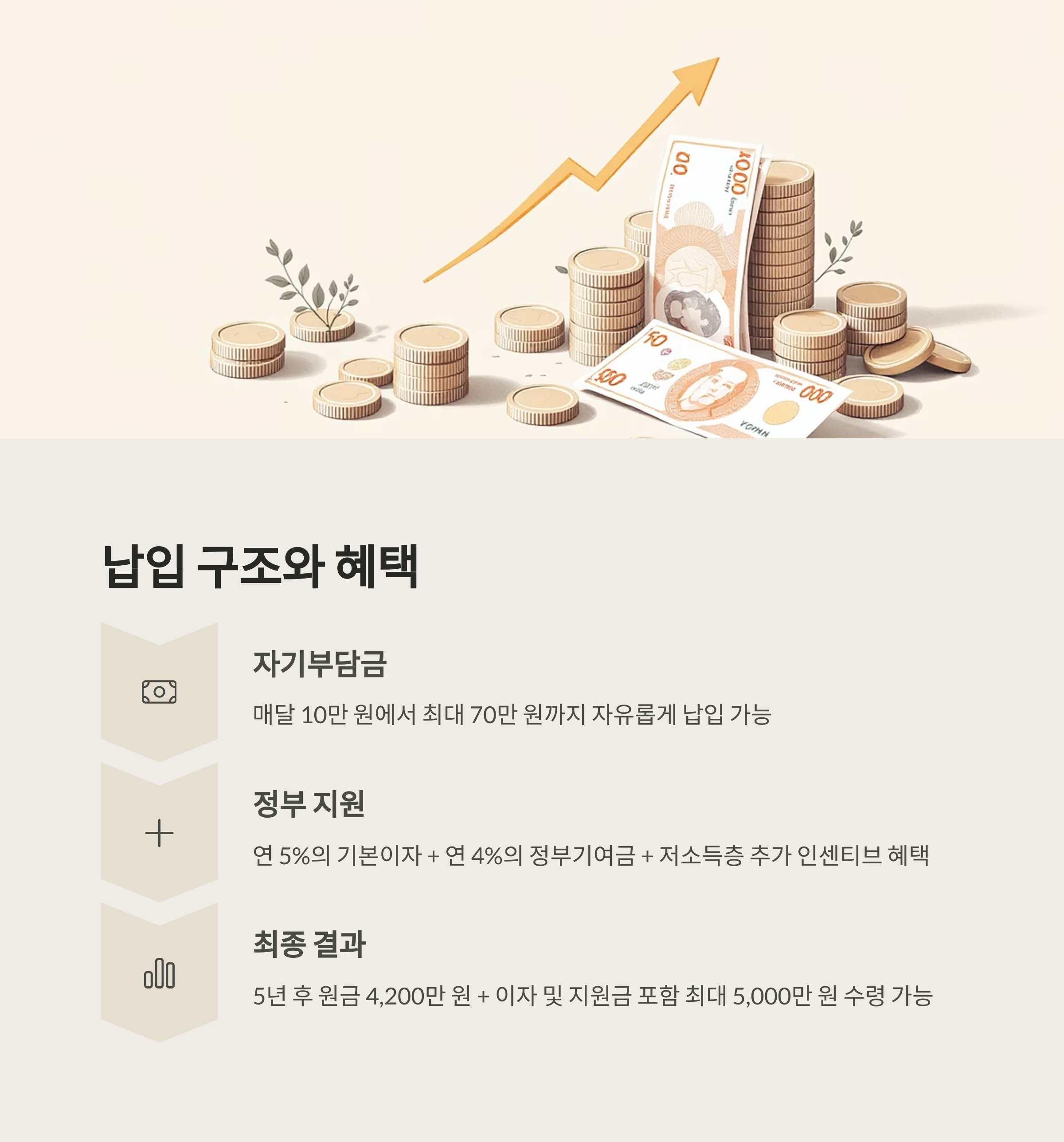 - 정부 인센티브: 청년내일저축계좌와 유사한 구조