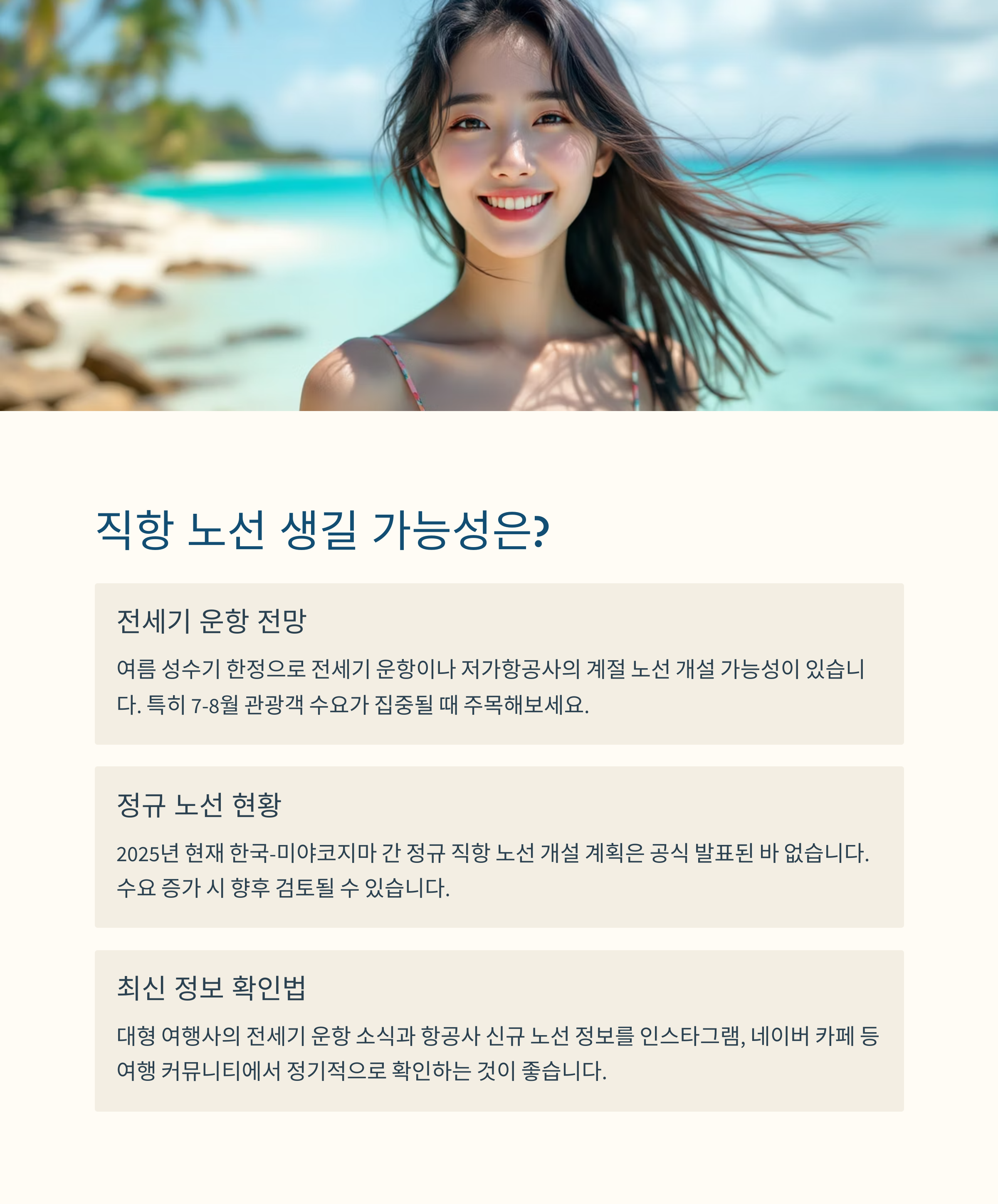 2025년 기준, 한국-미야코지마 직항 노선 현황이에요
