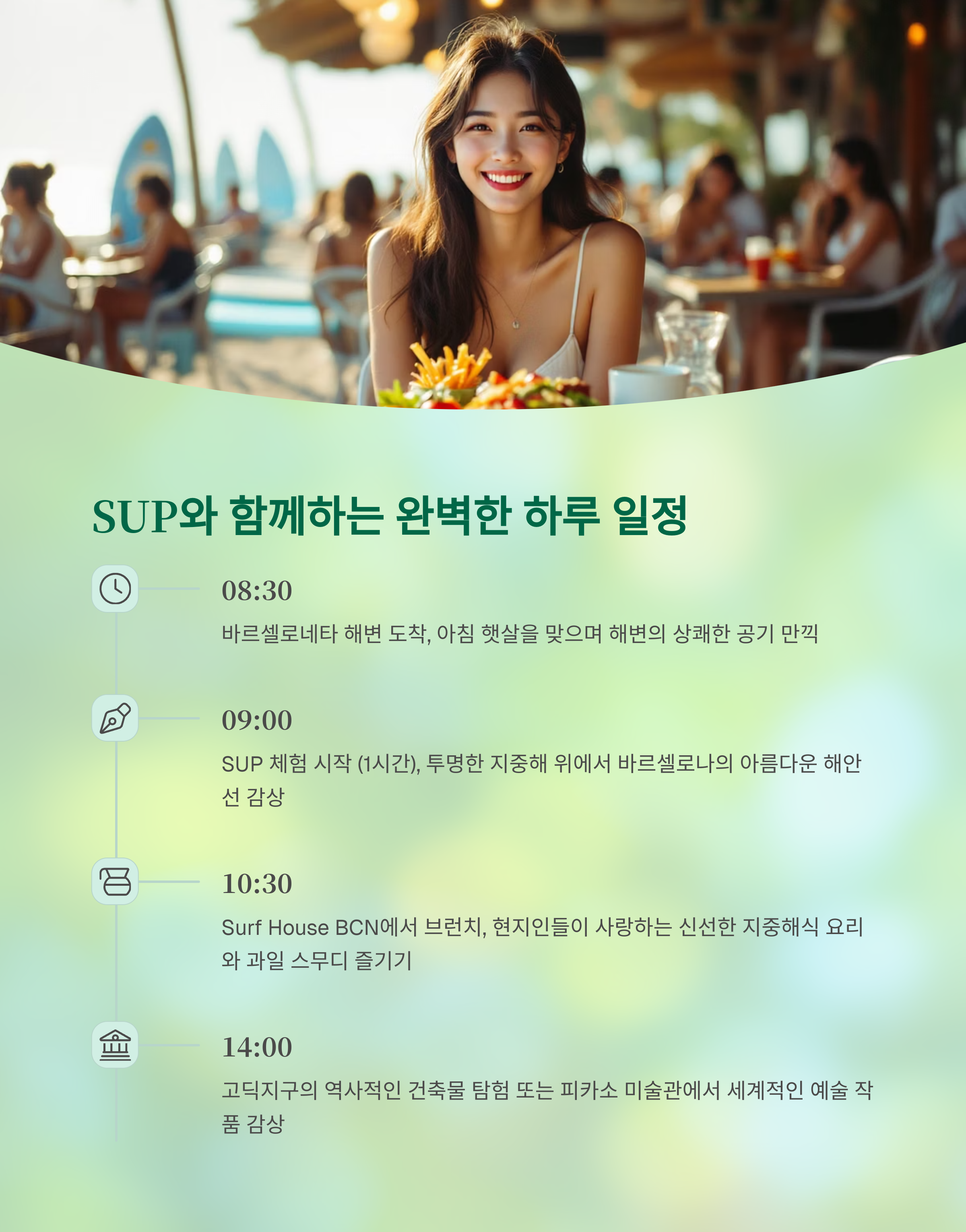 | 10:30 | 비치 카페 브런치 (Surf House BCN 추천) |