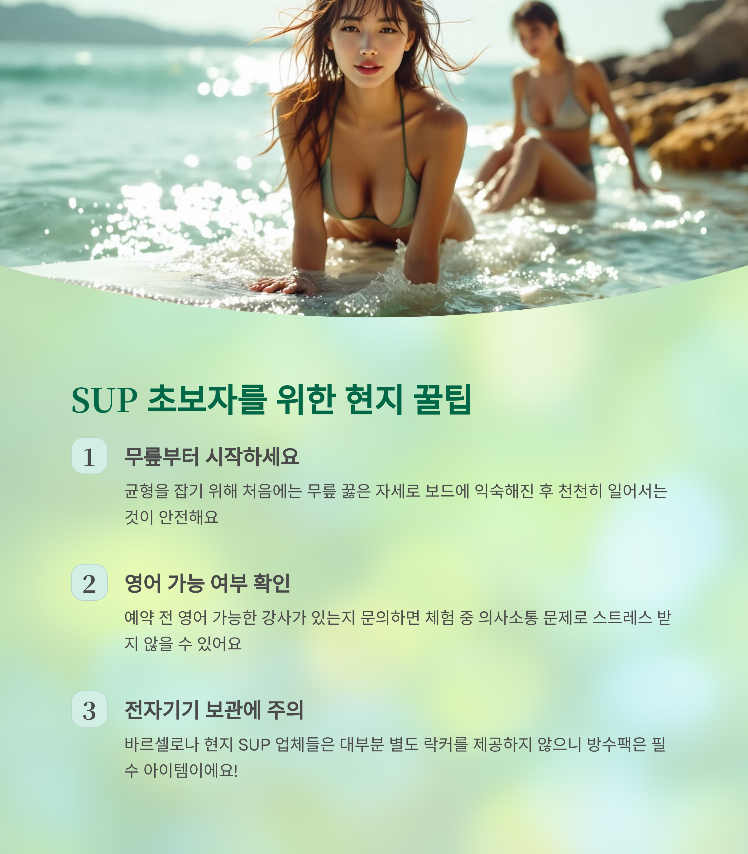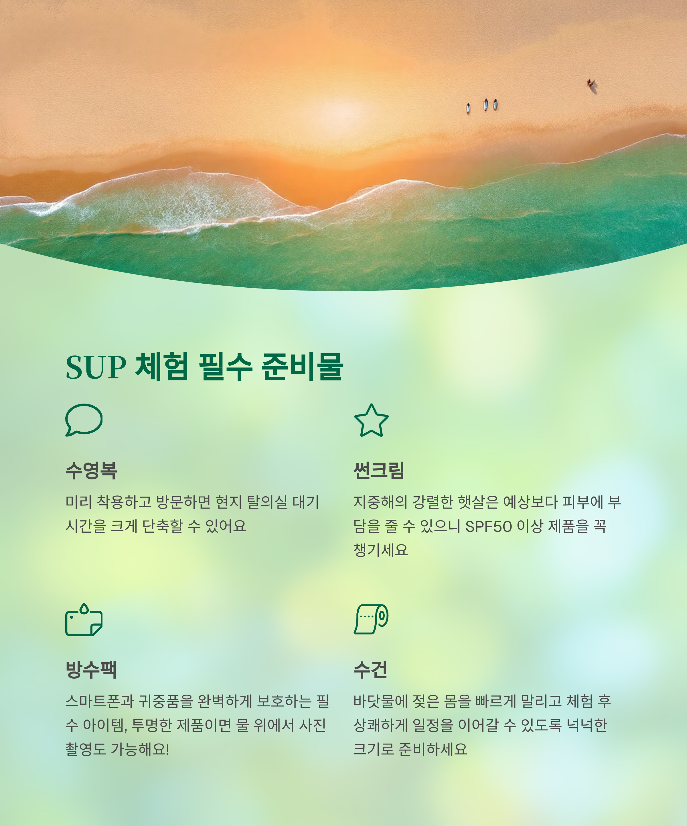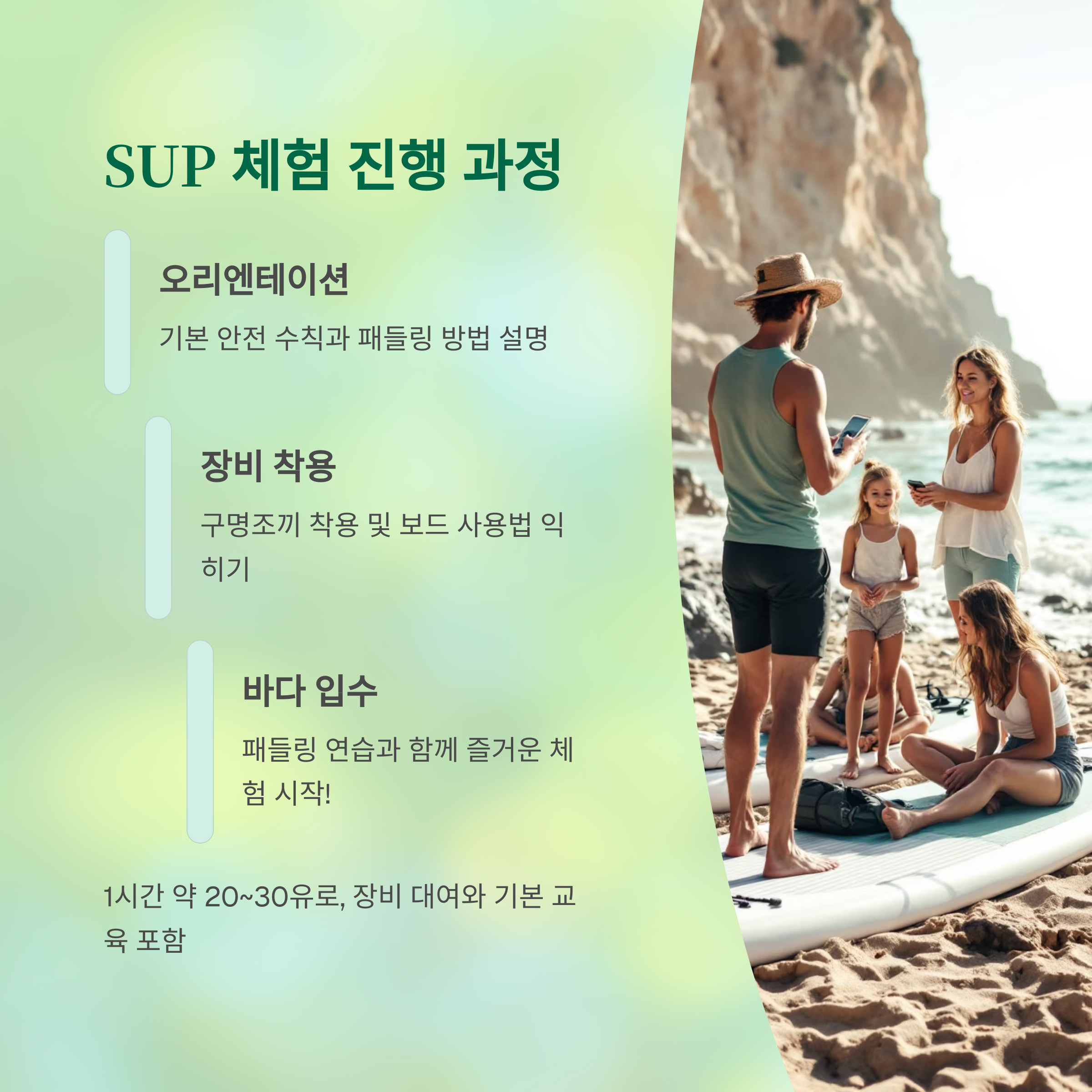 이번 글에서는 SUP 강습 정보, 추천 시간대, 장비 대여,