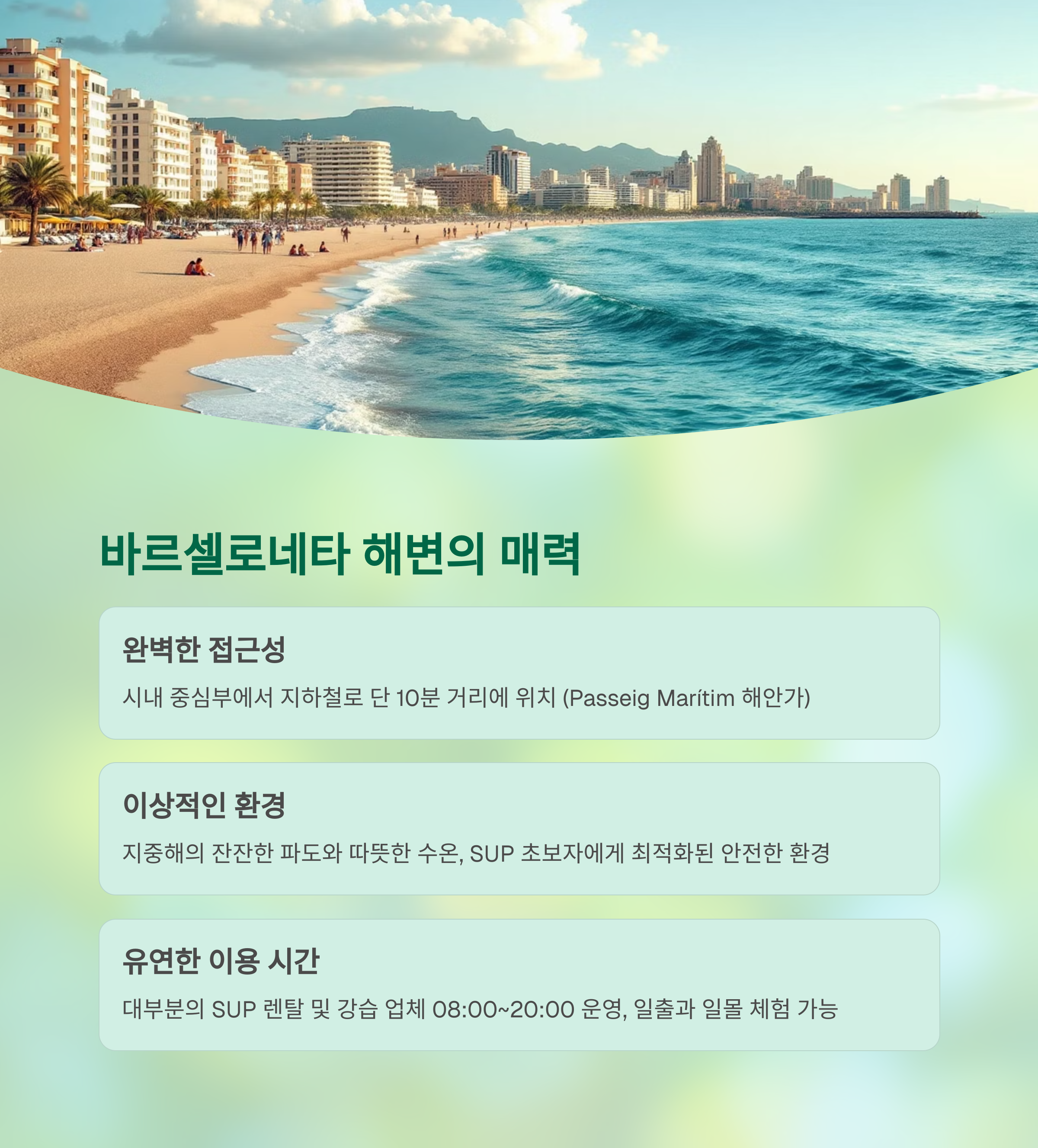 패들을 천천히 저으며 바르셀로나 해안선을 바라보는 순간,