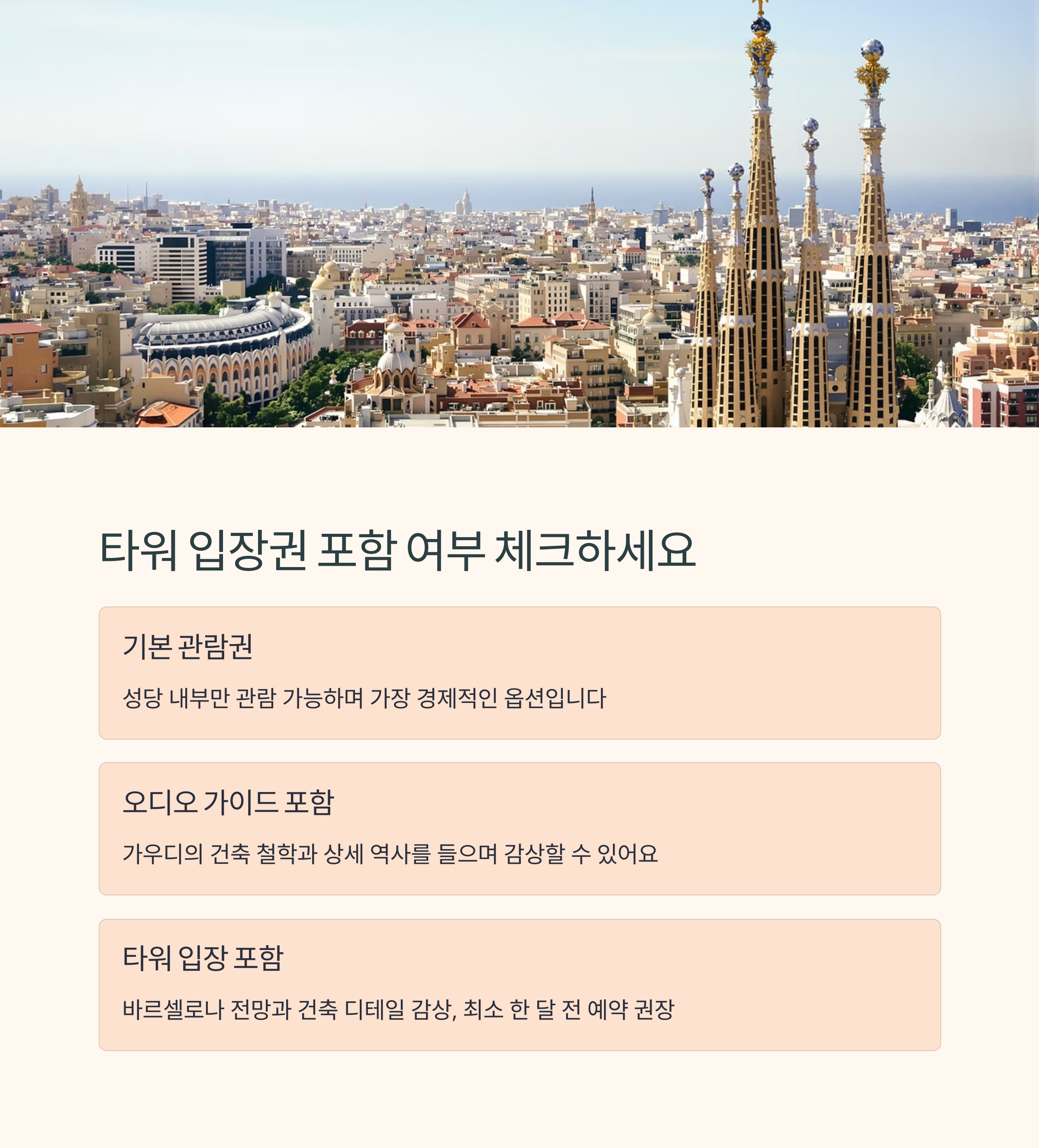 특히 ‘수난의 파사드’에서 내려다보는 바르셀로나 전경은 압도적입니다.