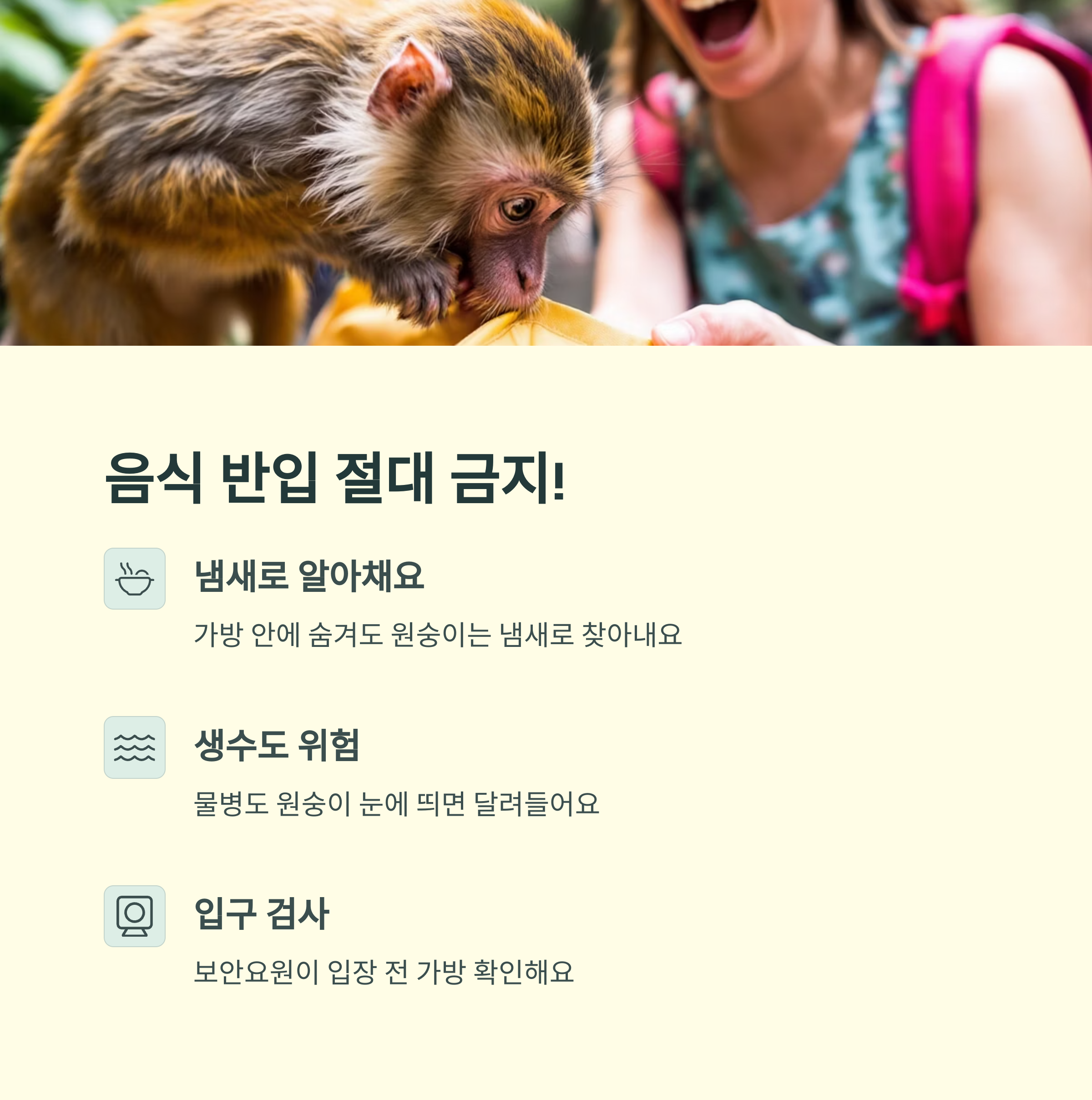 ① 음식, 음료 들고 입장 금지 – 원숭이들의 최우선 타깃