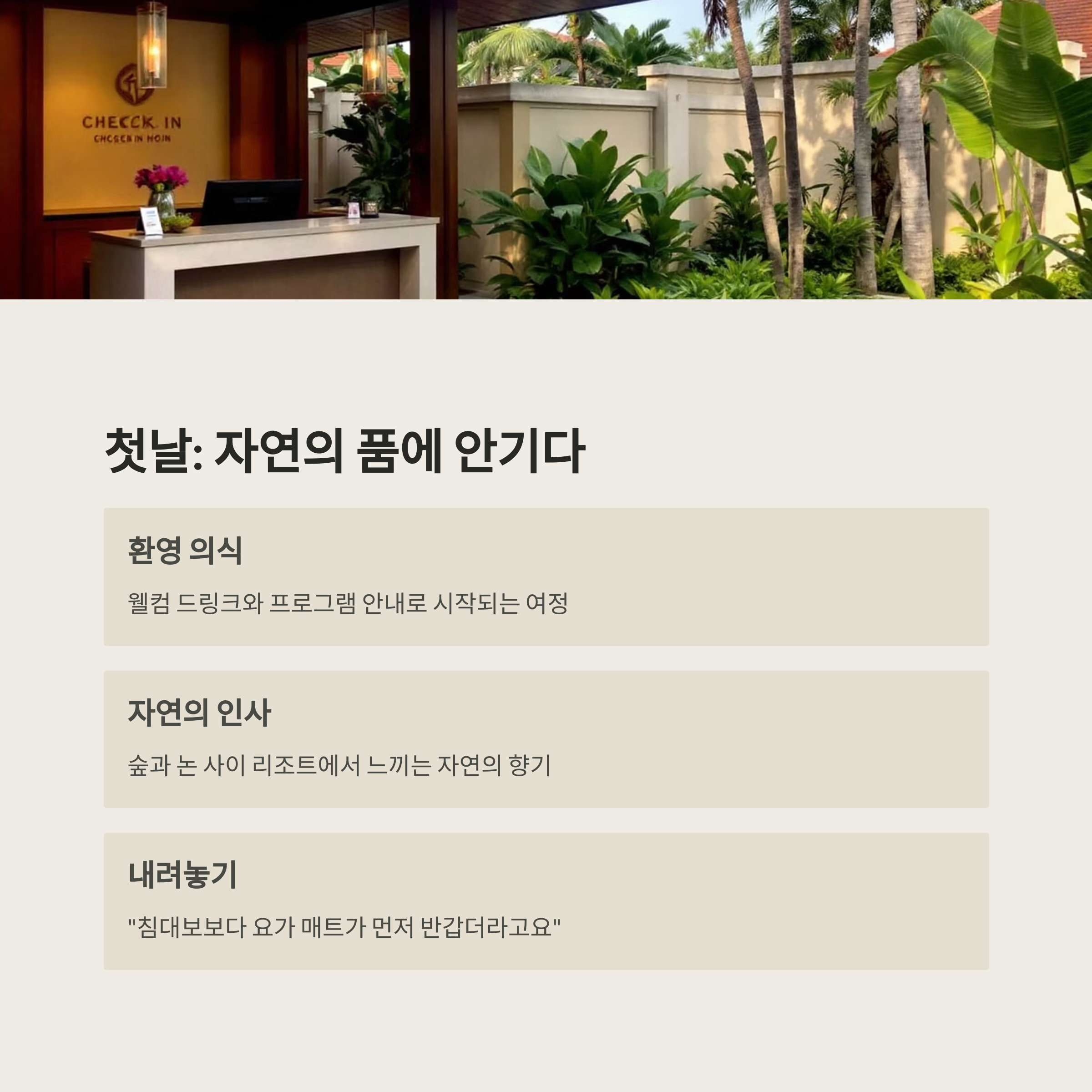 리트릿 첫날 – 환영과 자연 속 체크인
