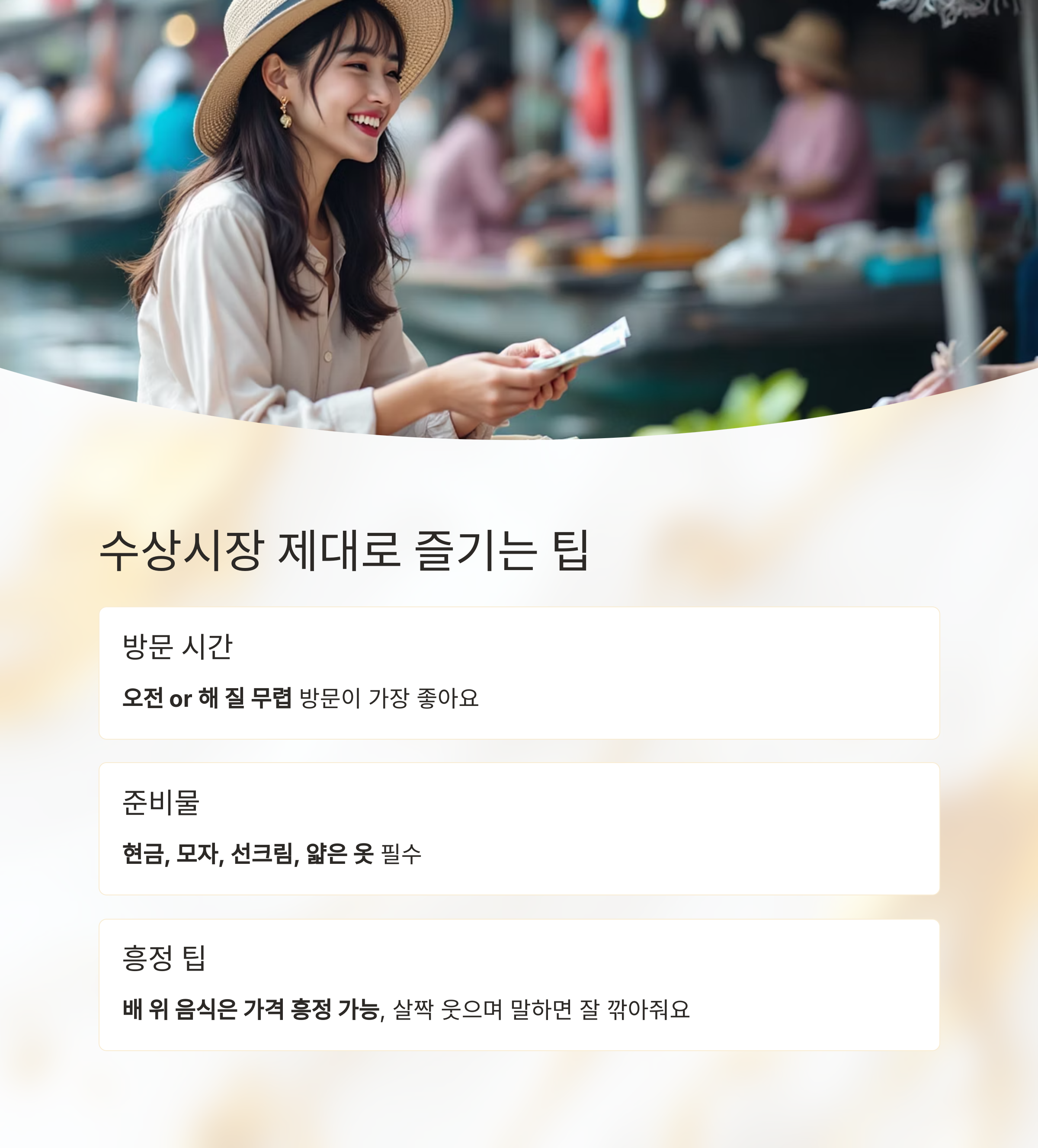 마무리 팁 – 수상시장 제대로 즐기려면?